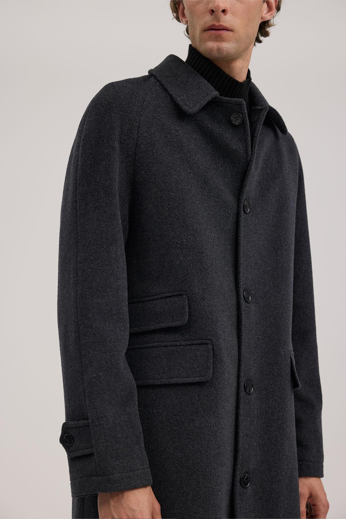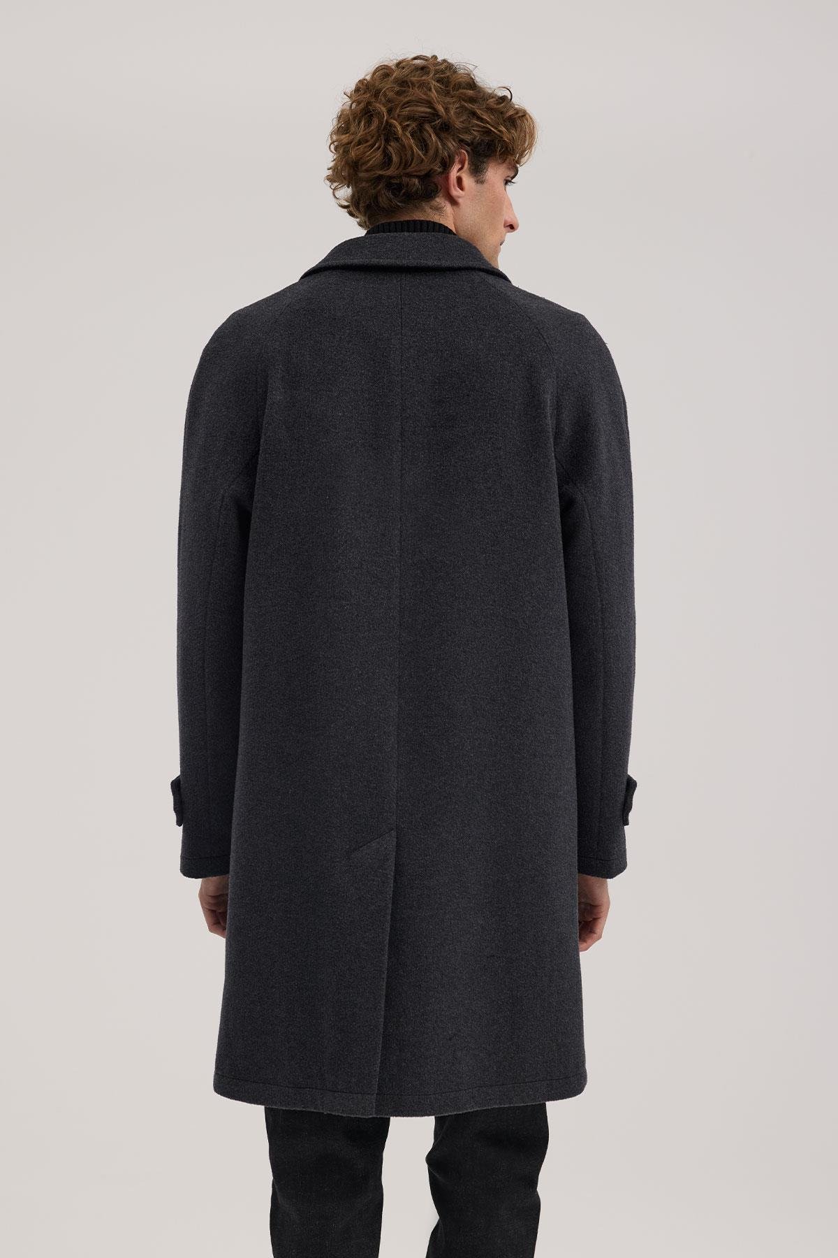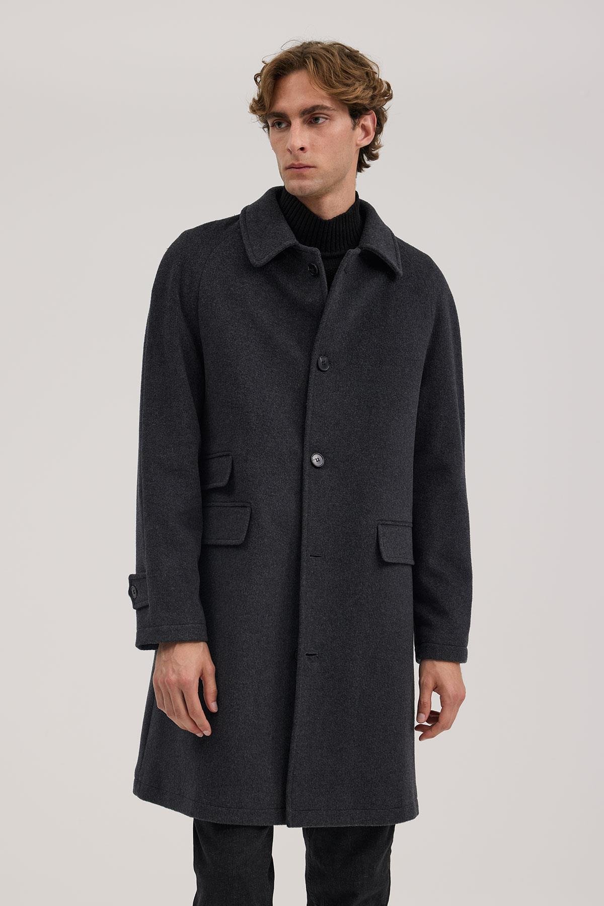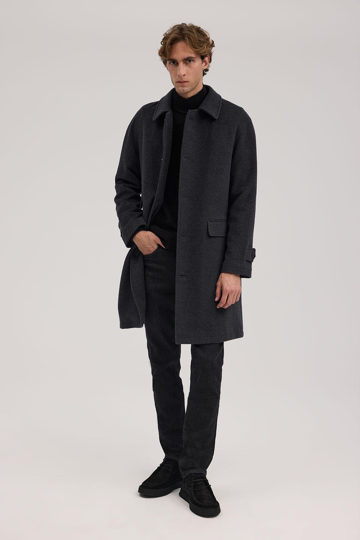 Antrasit Comfort Fit Bebe Yaka Yünlü Kaban
