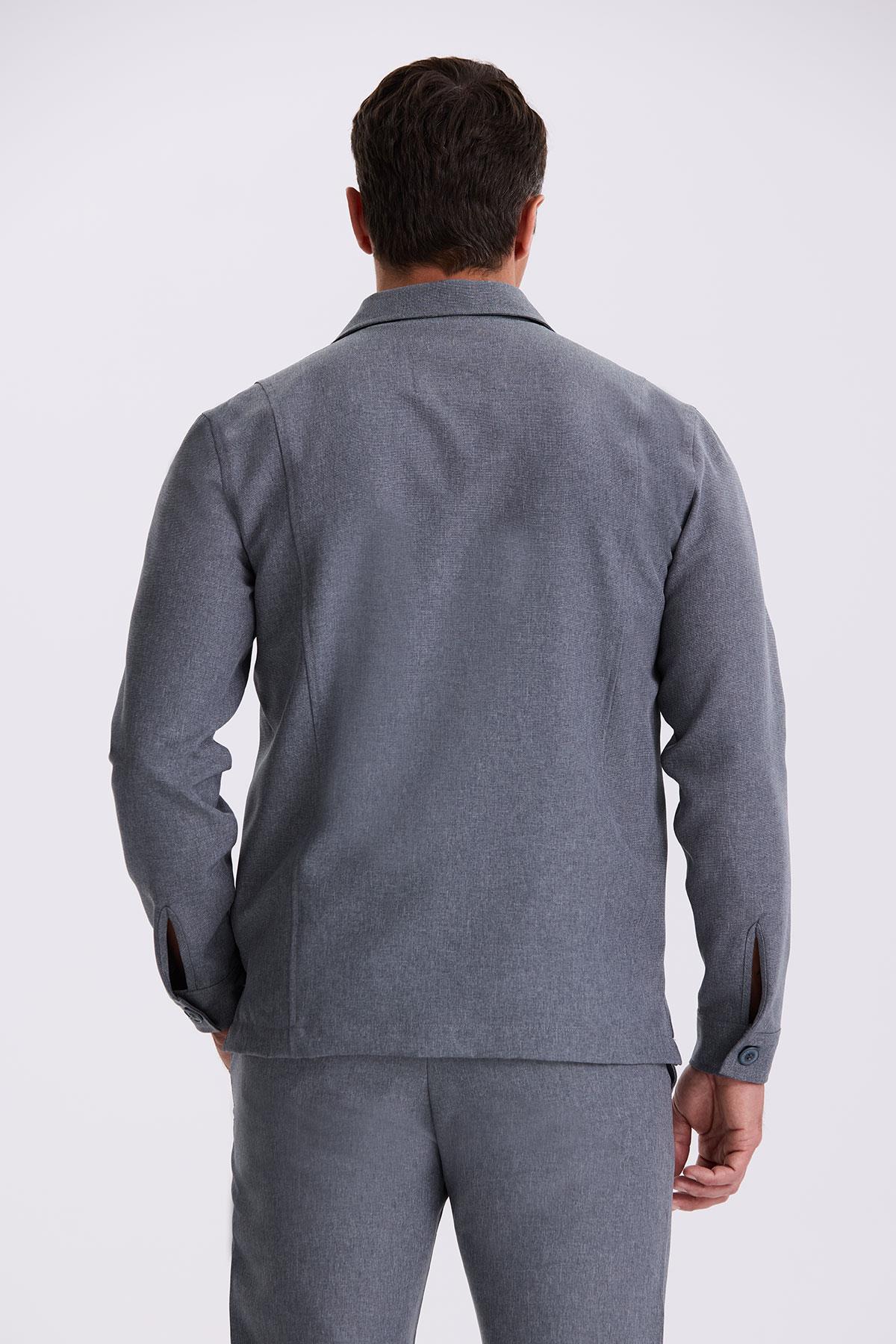 Antrasit Slim Fit Bebe Yaka Cepli Spor Takım Elbise