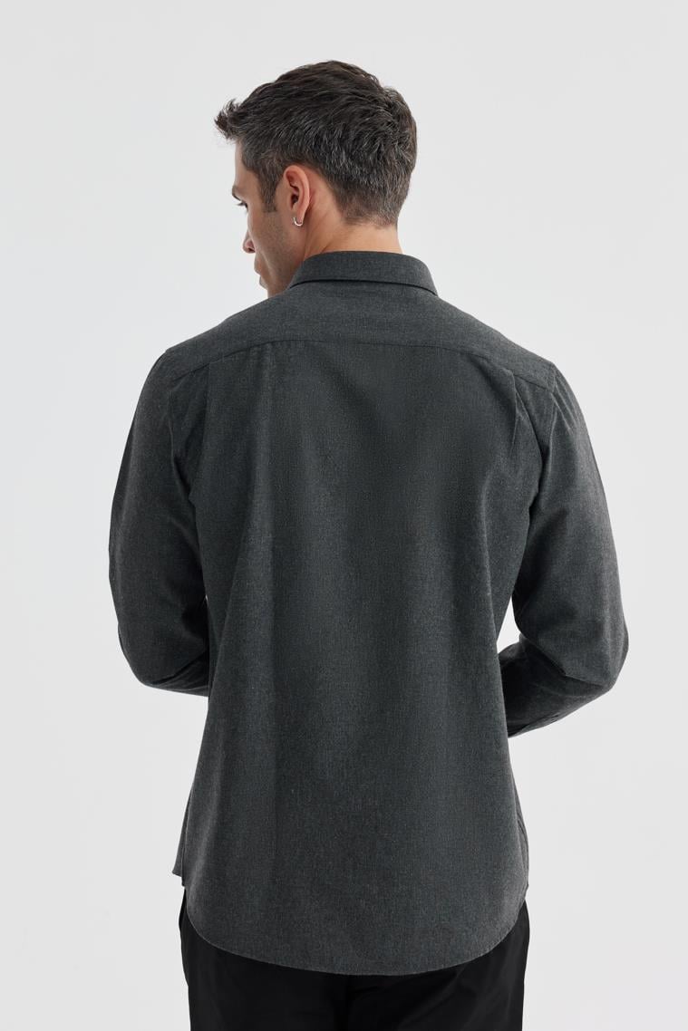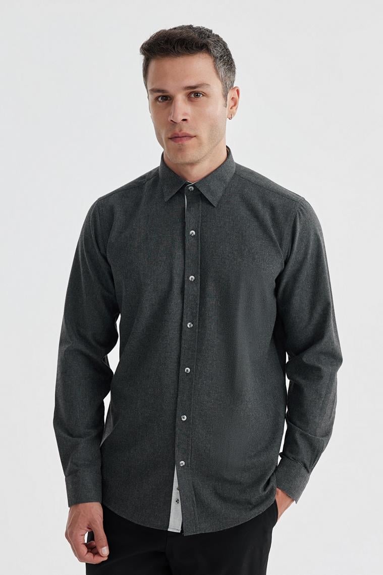 Antrasit Comfort Fit Gizli Düğmeli Yaka Gömlek