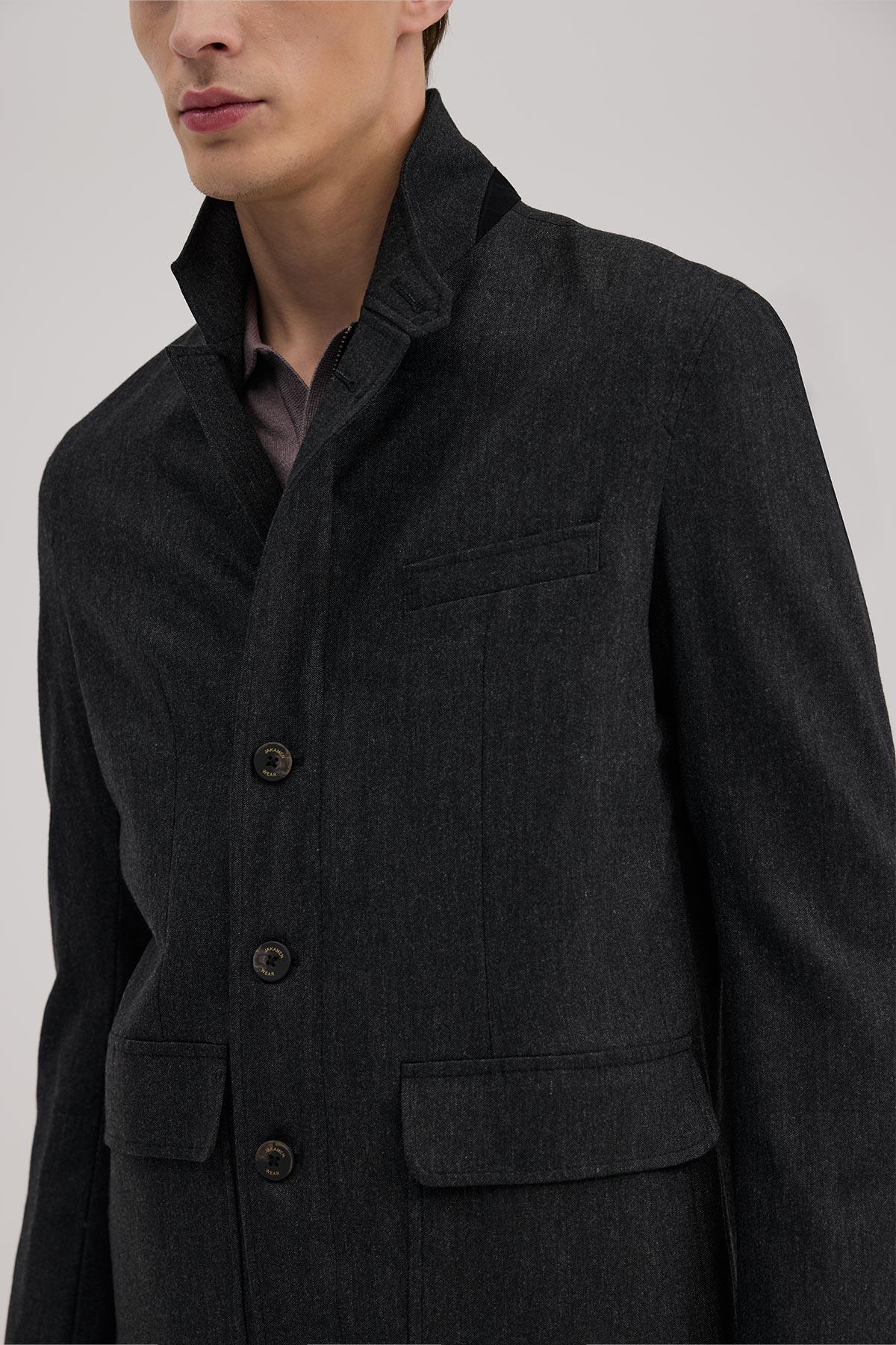 Antrasit Dar Kalıp - Slim Fit Ceket Mont Patlı