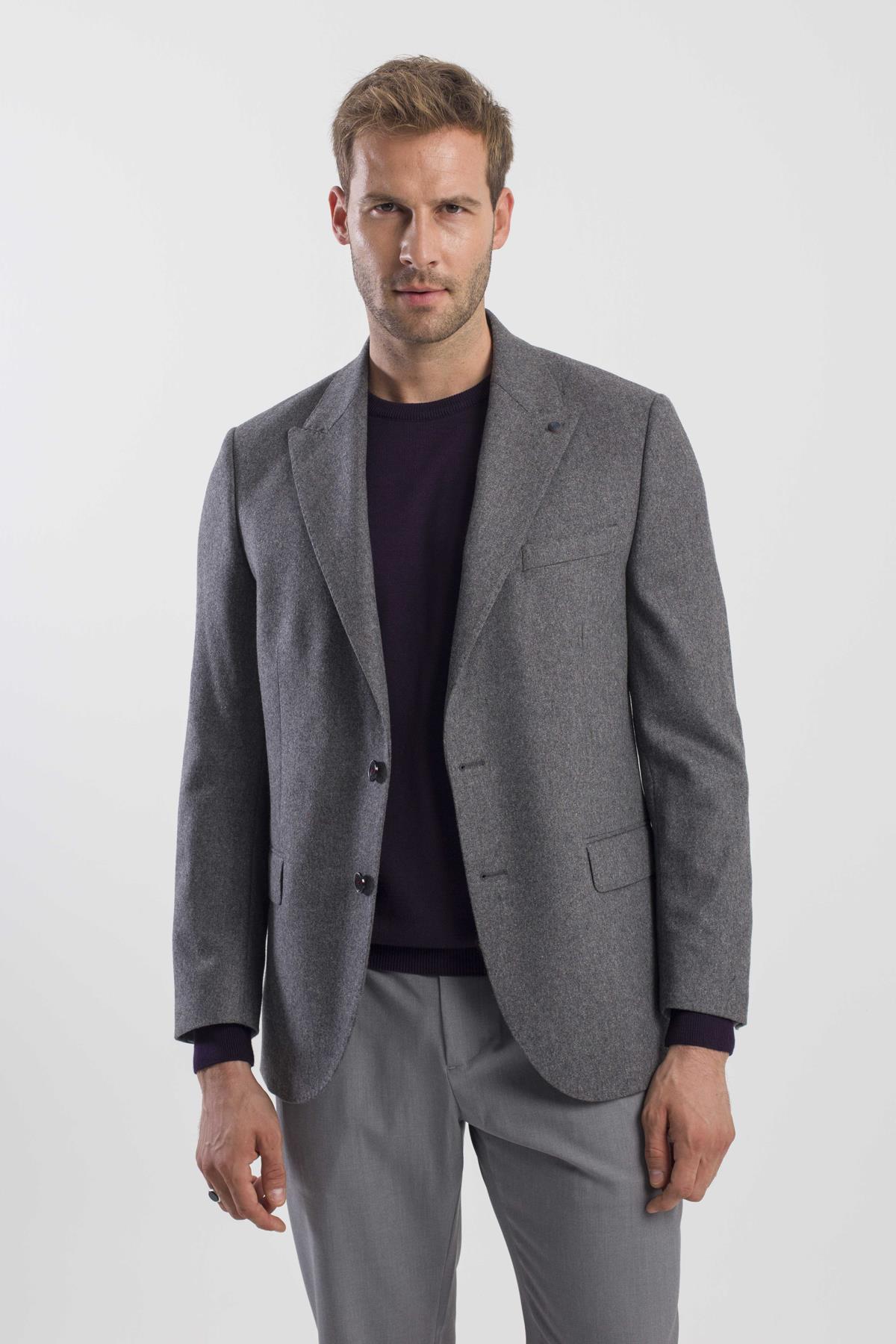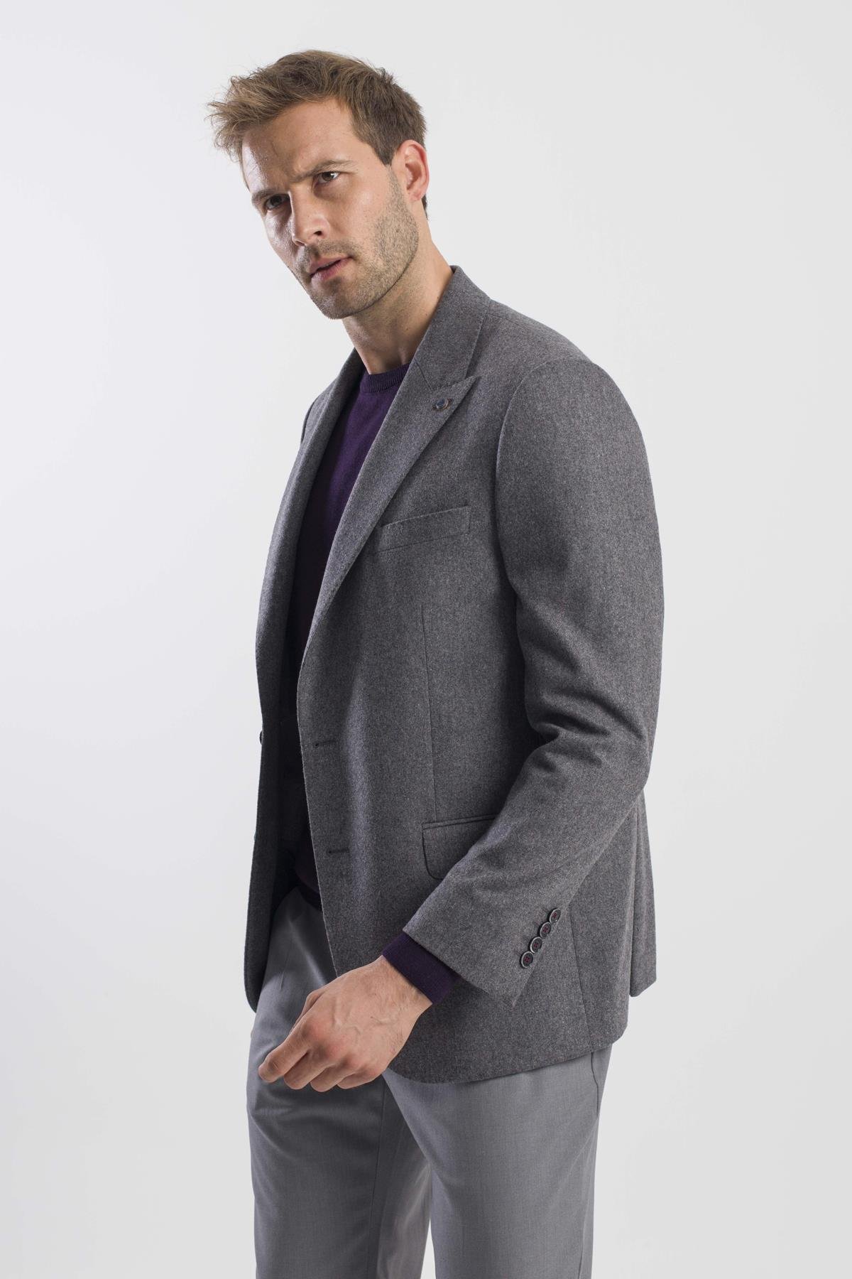 Antrasit Klasik Kalıp Yünlü Sivri Yaka Ceket