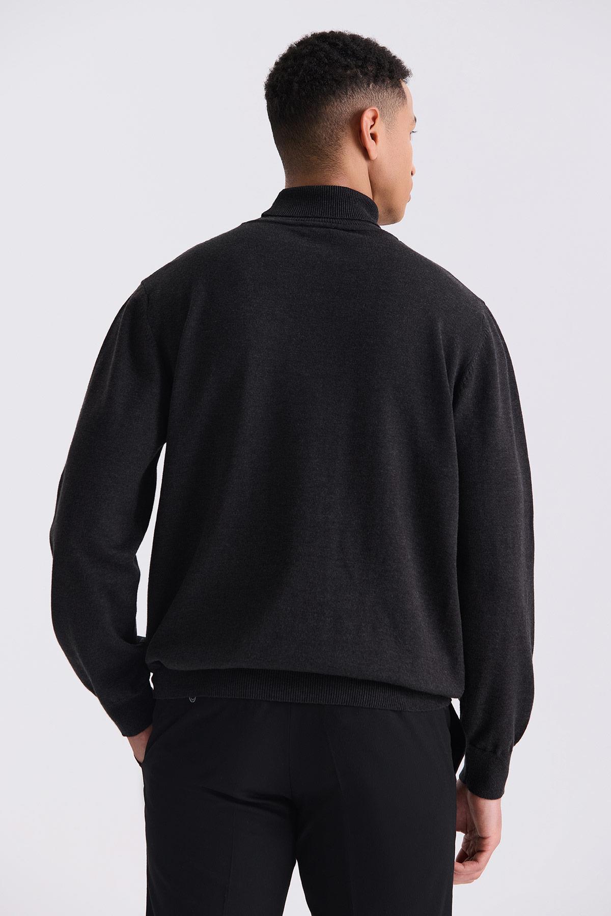 Antrasit Slim Fit Tam Balıkçı Yaka Triko Kazak