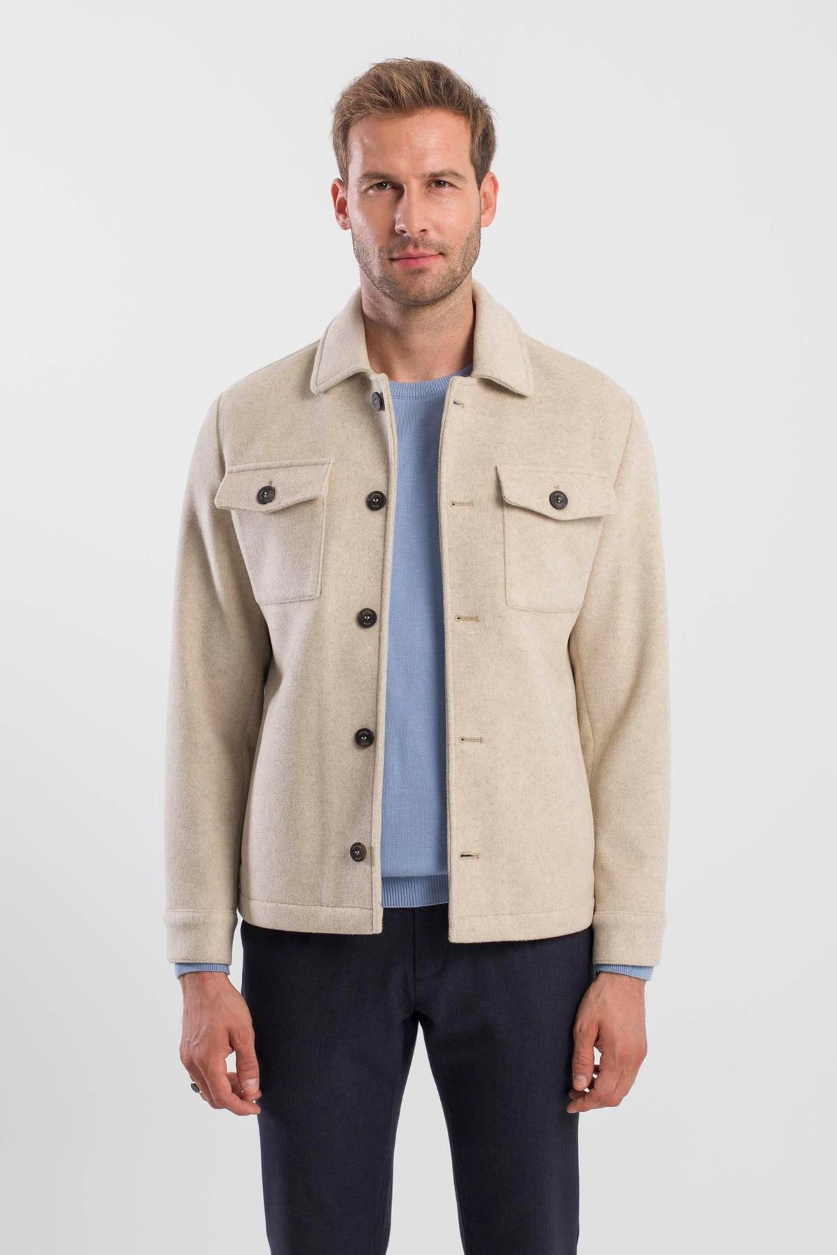 Bej Comfort Fit Bebe Yaka Yünlü Mont