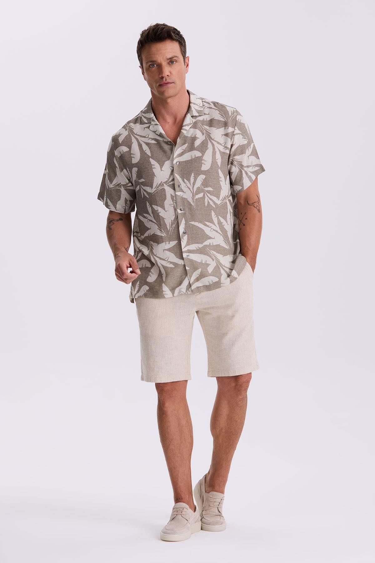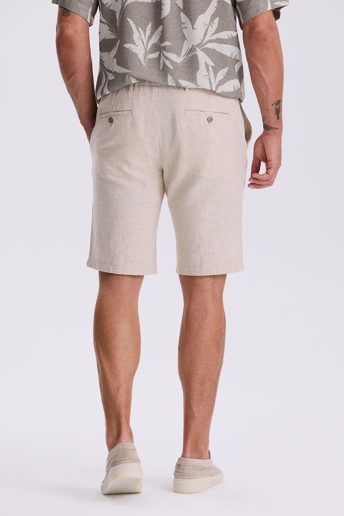 Bej Comfort Fit Pamuklu Rahat Kesim Keten Dokulu Şort