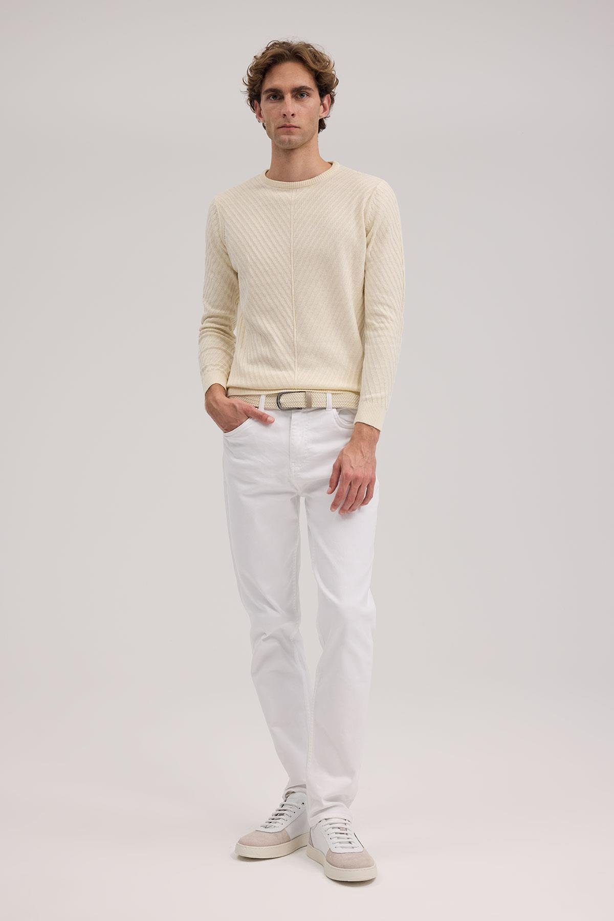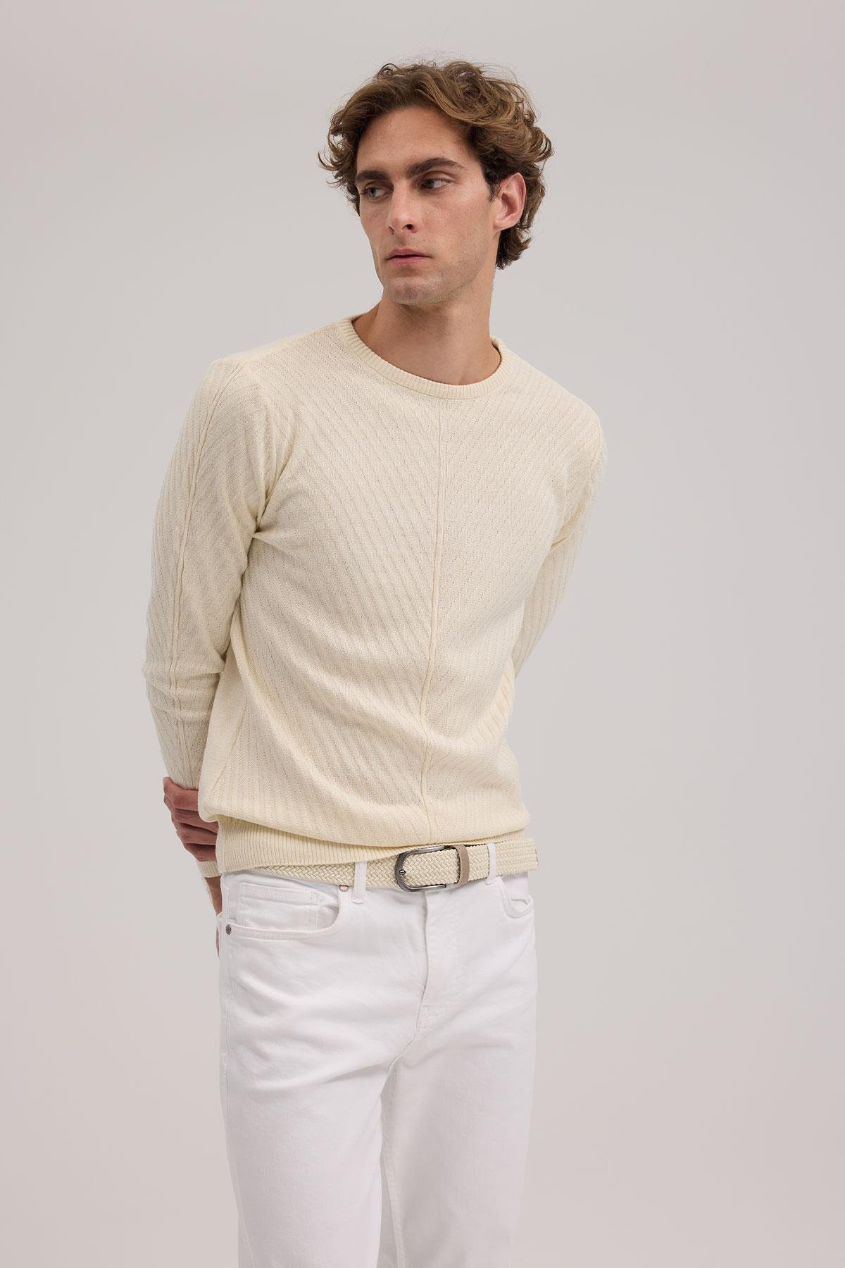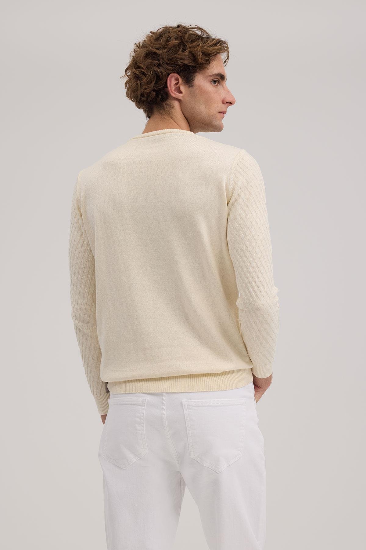 Bej Dar Kalıp - Slim Fit Triko Bisiklet Yaka