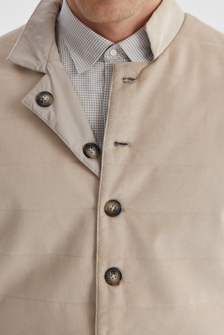 Bej Hakim Yaka Çift Taraflı Slim Fit Yelek