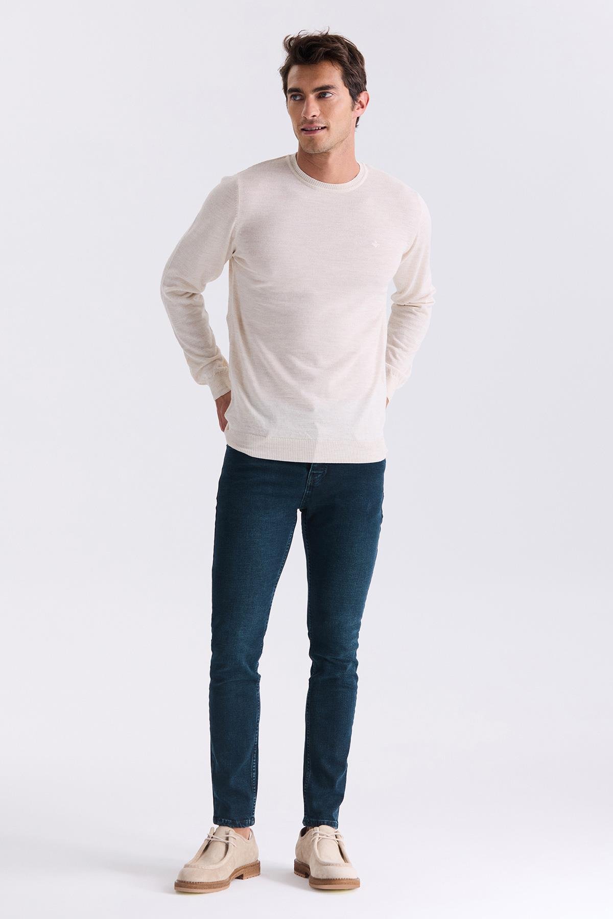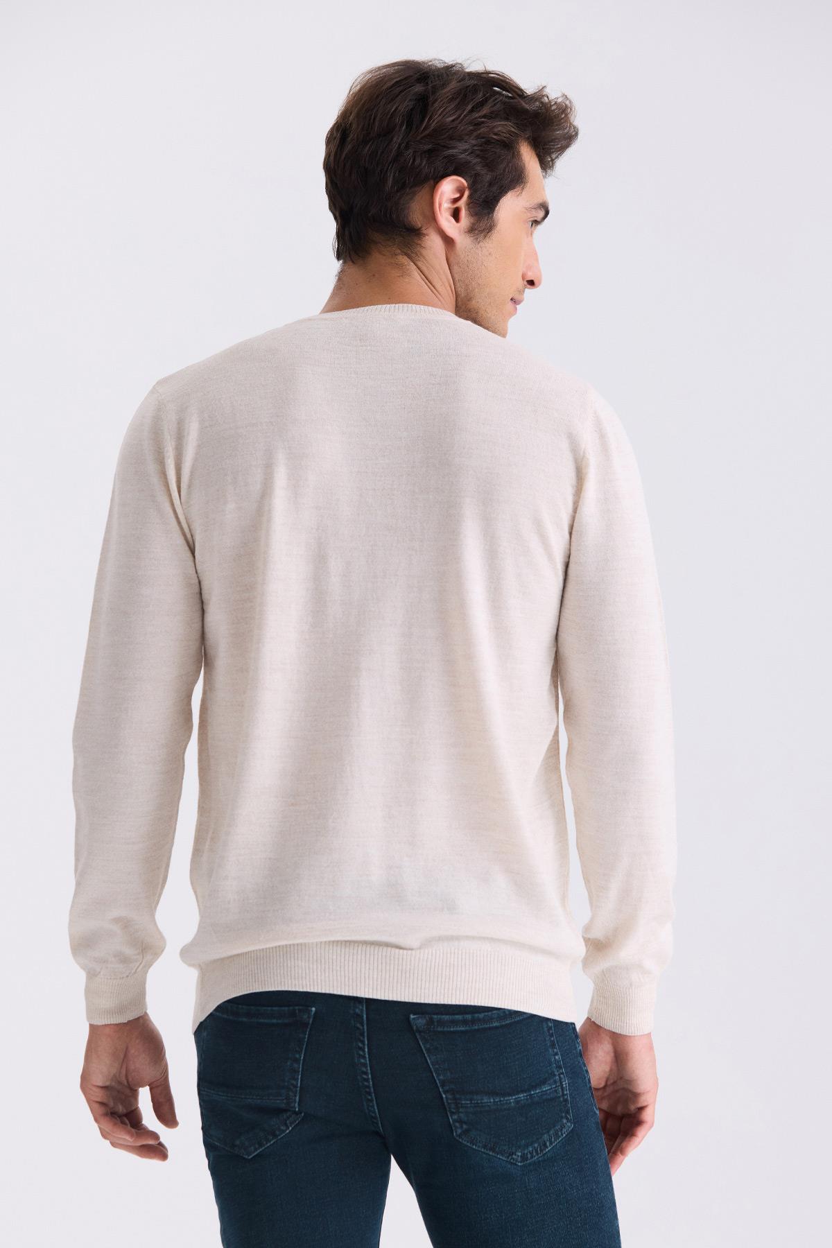 Bej Regular Fit Bisiklet Yaka Triko Kazak