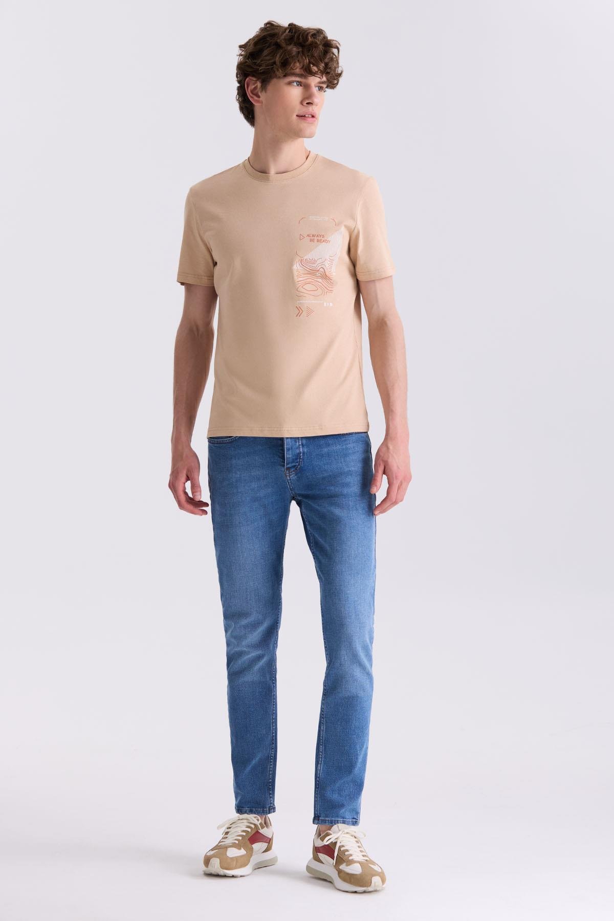 Bej Slim Fit Bisiklet Yaka T-Shirt