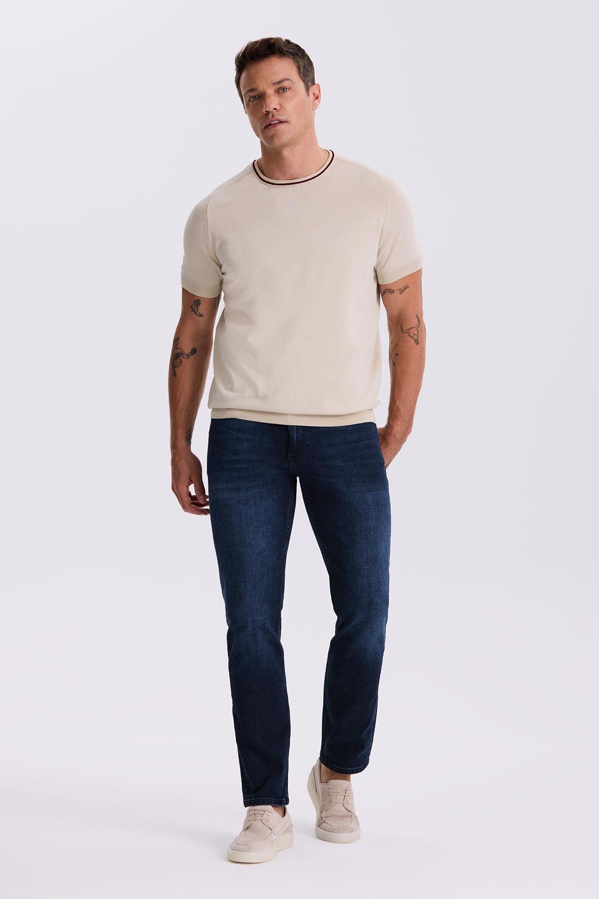 Bej Slim Fit Triko Bisiklet Yaka T-Shirt