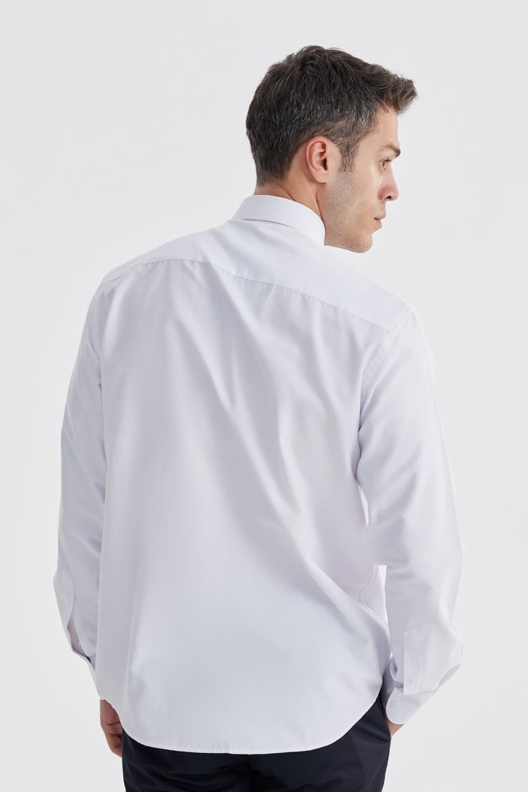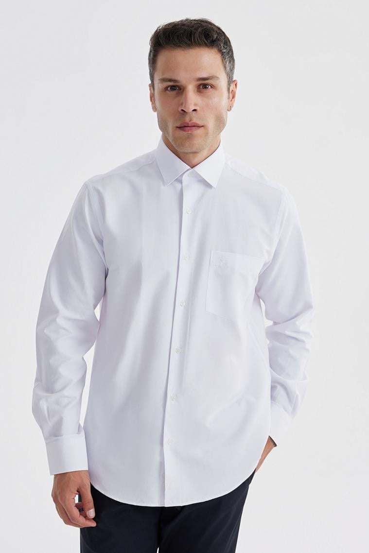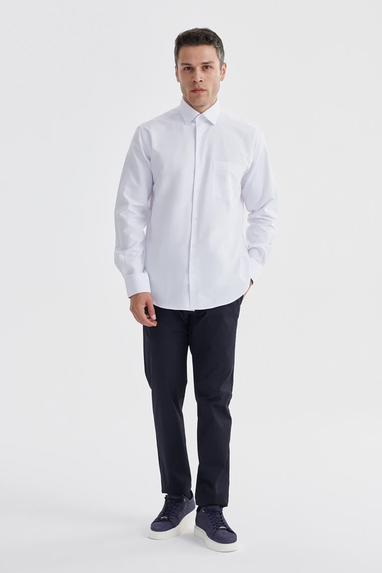 Beyaz Klasik Fit Klasik Yaka Cepli Kravatlık Gömlek