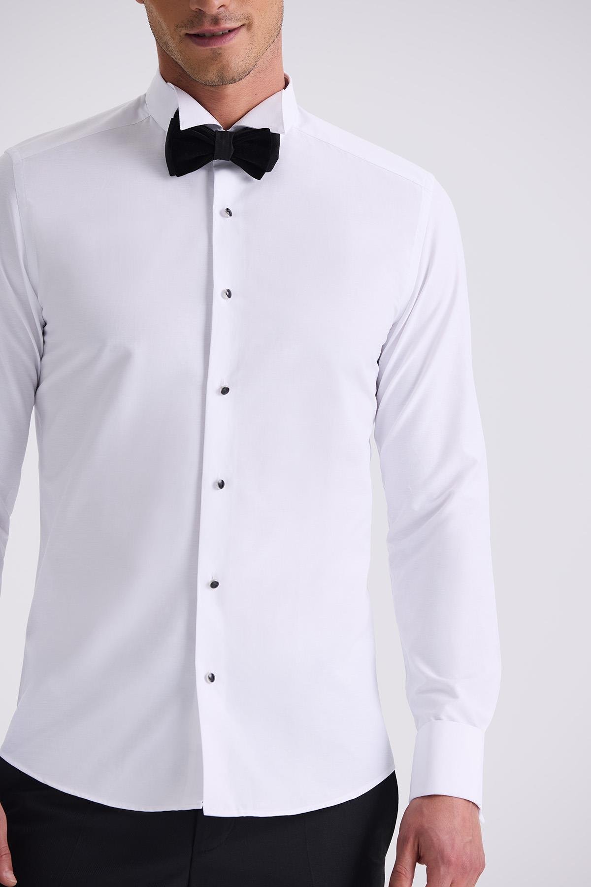 Beyaz Slim Fit Ata Yaka Double Manşet Gömlek