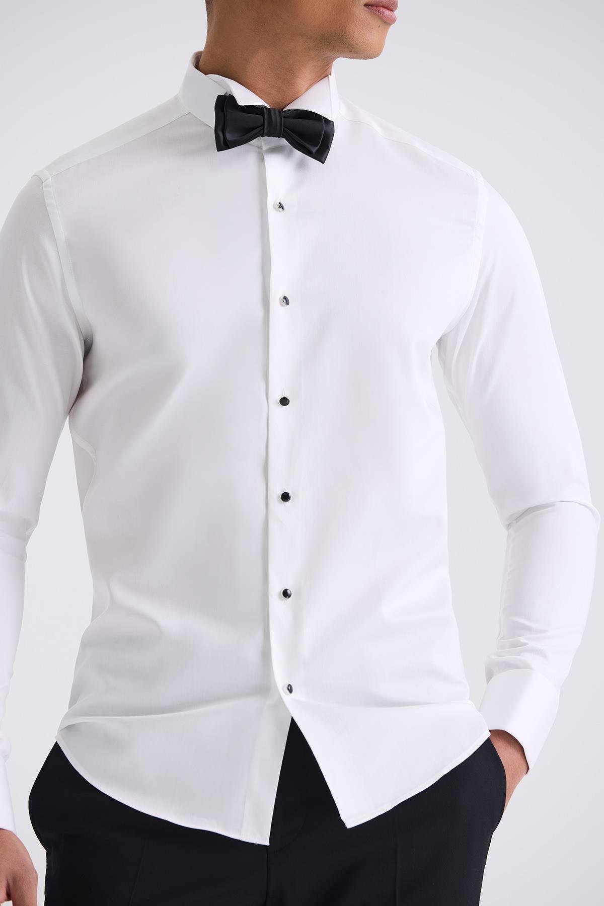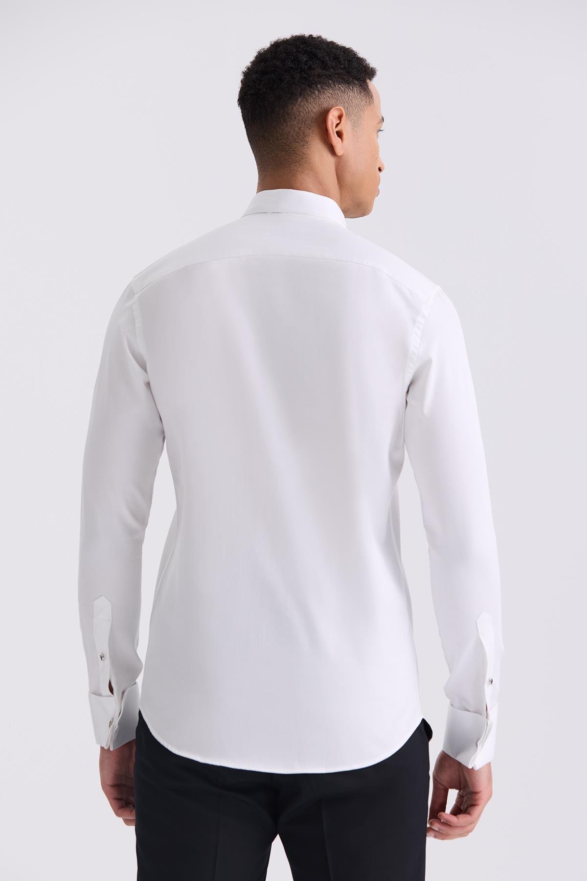 Beyaz Slim Fit Kol Düğmeli %100 Pamuk Ata Yaka Gömlek