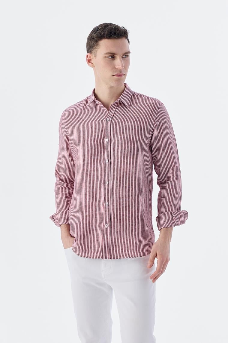 Bordo Rahat Kalıp - Comfort Fit Gömlek Klasik Yaka