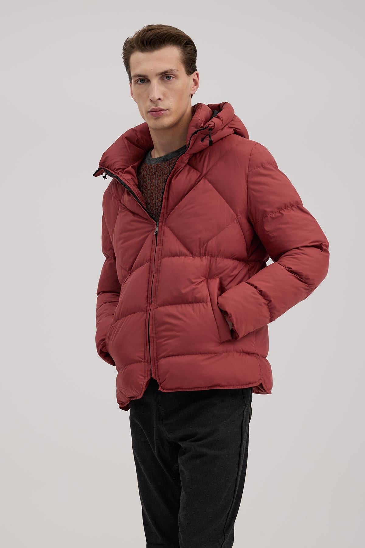 Bordo Rahat Kalıp - Comfort Fit Mont Kapüşonlu