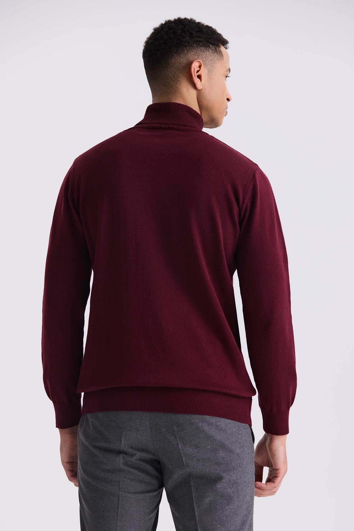 Bordo Slim Fit Tam Balıkçı Yaka Triko Kazak