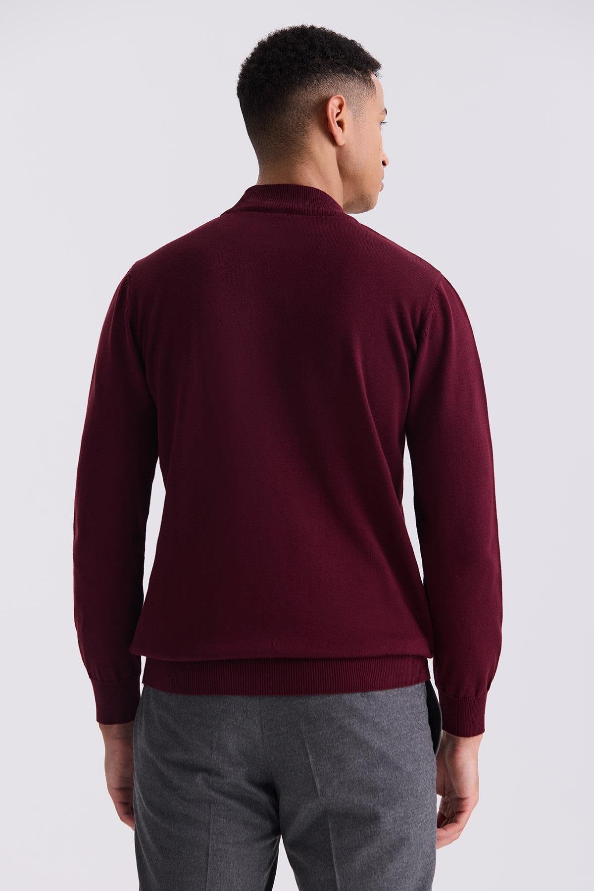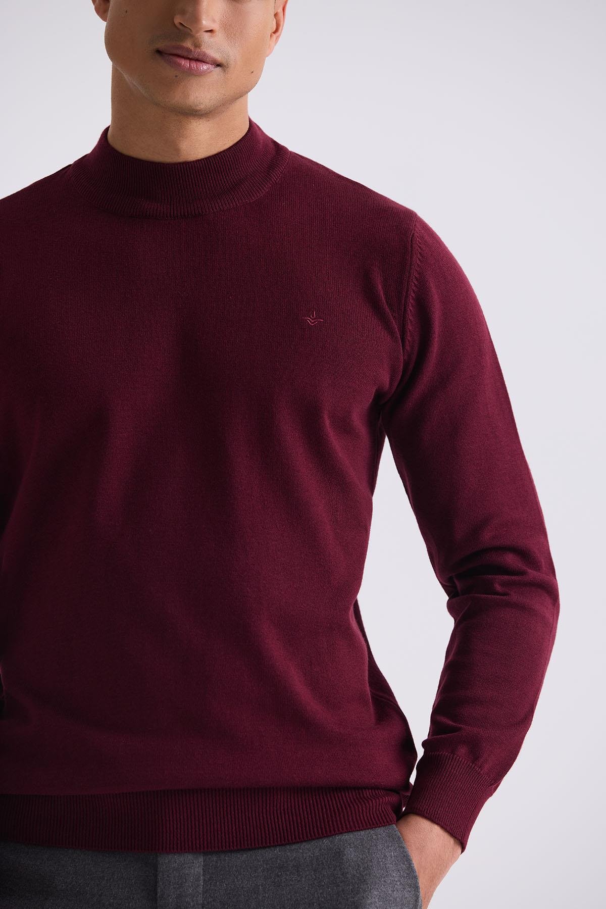 Bordo Slim Fit Yarım Balıkçı Triko Kazak