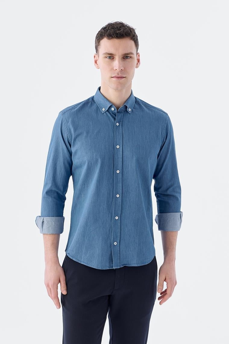 Dar Kalıp - Slim Fit Serili Gömlek-Jakamen Denim Serili