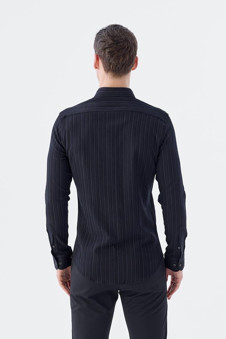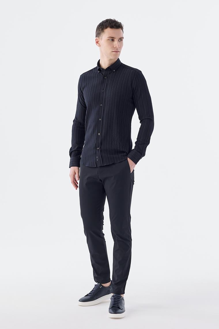 Dar Kalıp - Slim Fit Serili Gömlek-Jakamen Yaka Alttan Düğmeli Serili