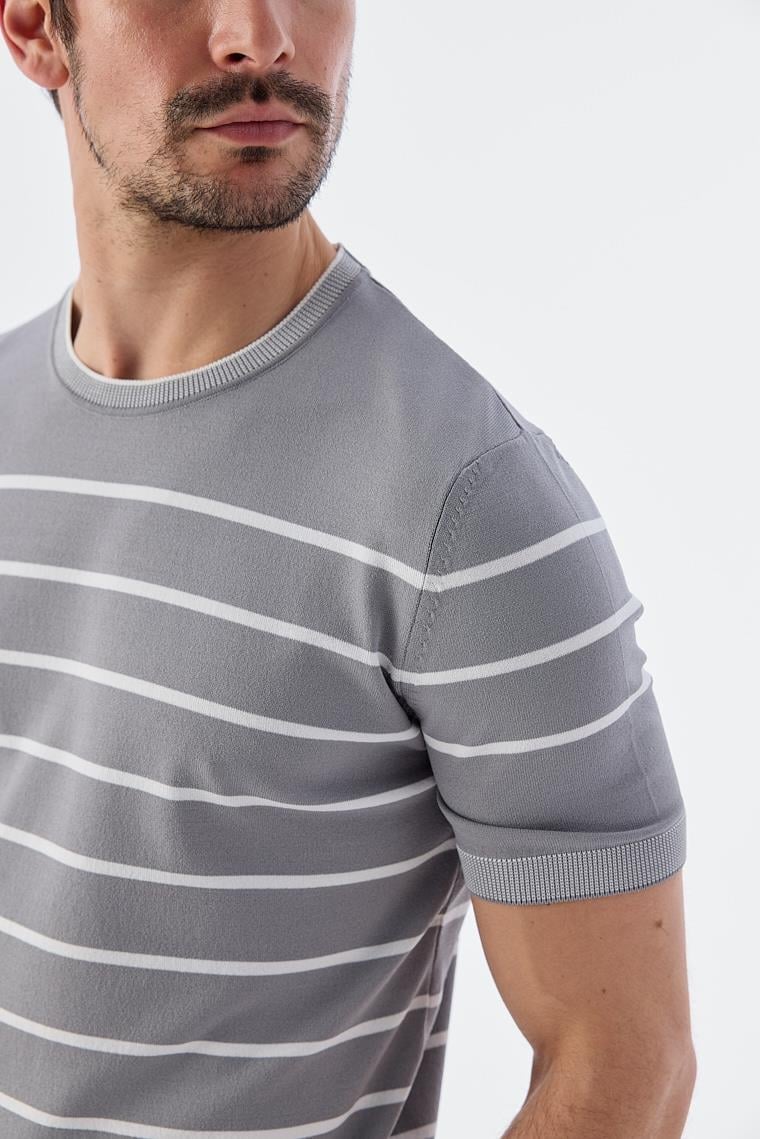 Dar Kalıp - Slim Fit Serili T-Shirt-Jakamen Bisiklet Yaka Serili