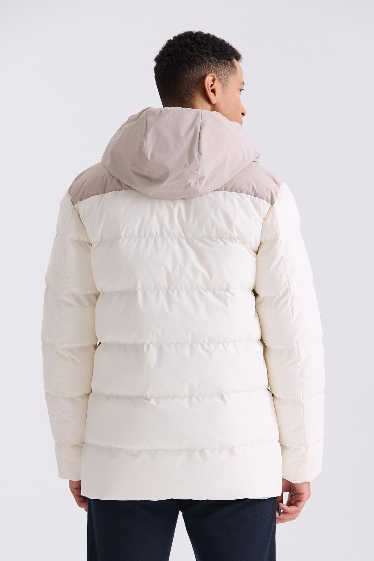 Ekru Comfort Fit Kapüşonlu Cepli Şişme Mont