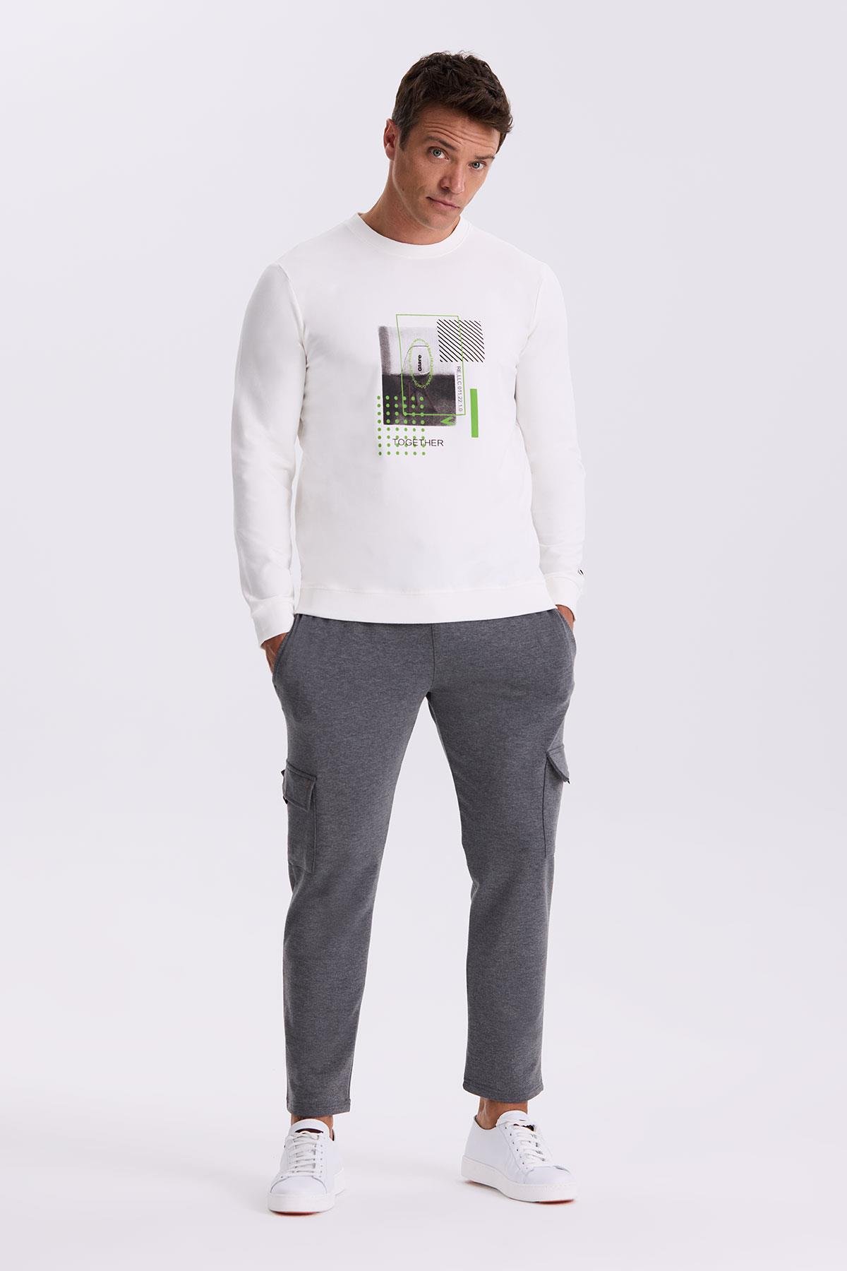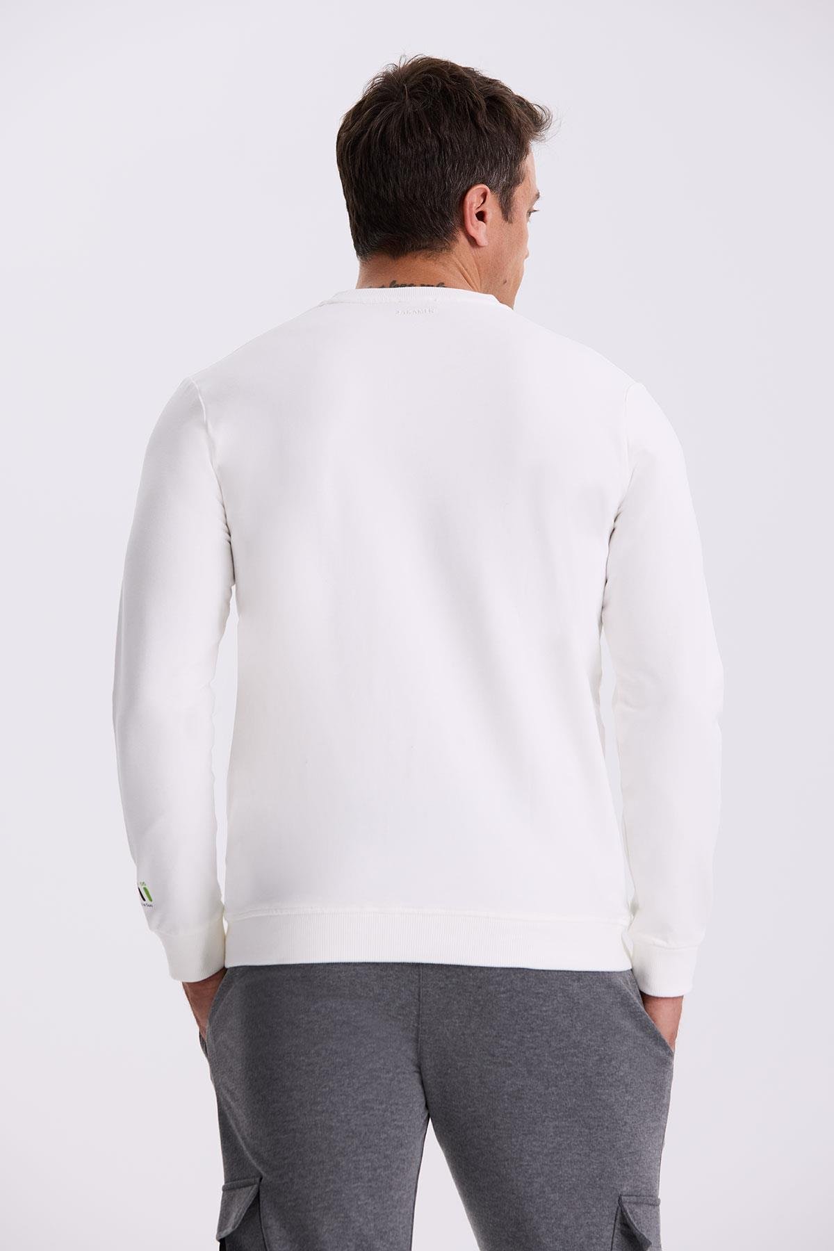 Ekru Slim Fit Baskılı Bisiklet Yaka Dar Kesim Baskılı %100 Pamuk Sweatshirt