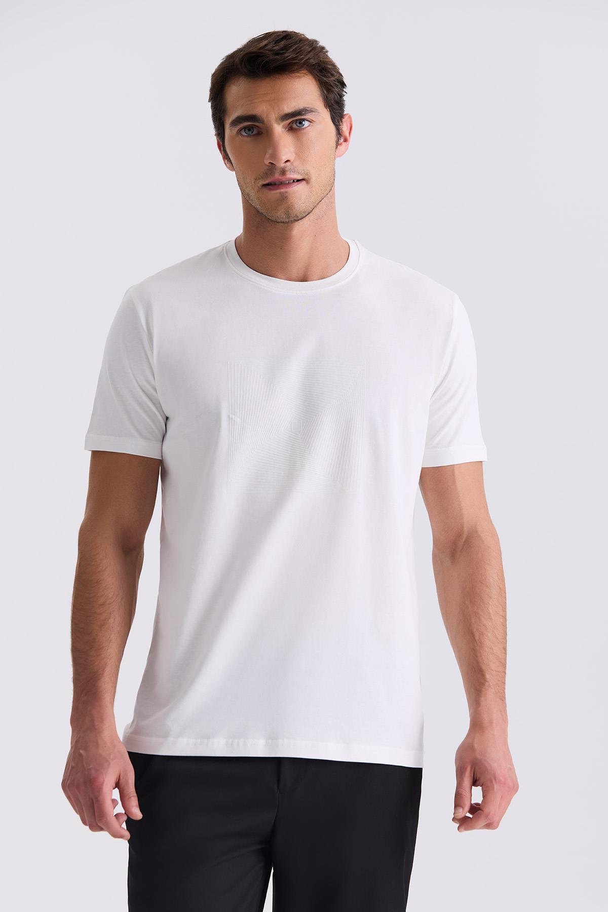 Ekru Slim Fit Bisiklet Yaka T-Shirt