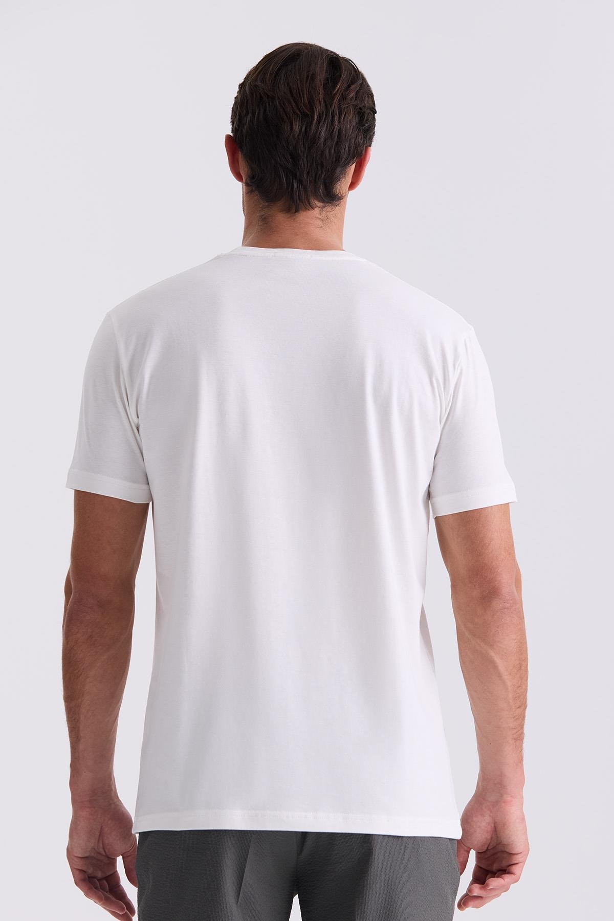 Ekru Slim Fit Bisiklet Yaka T-Shirt