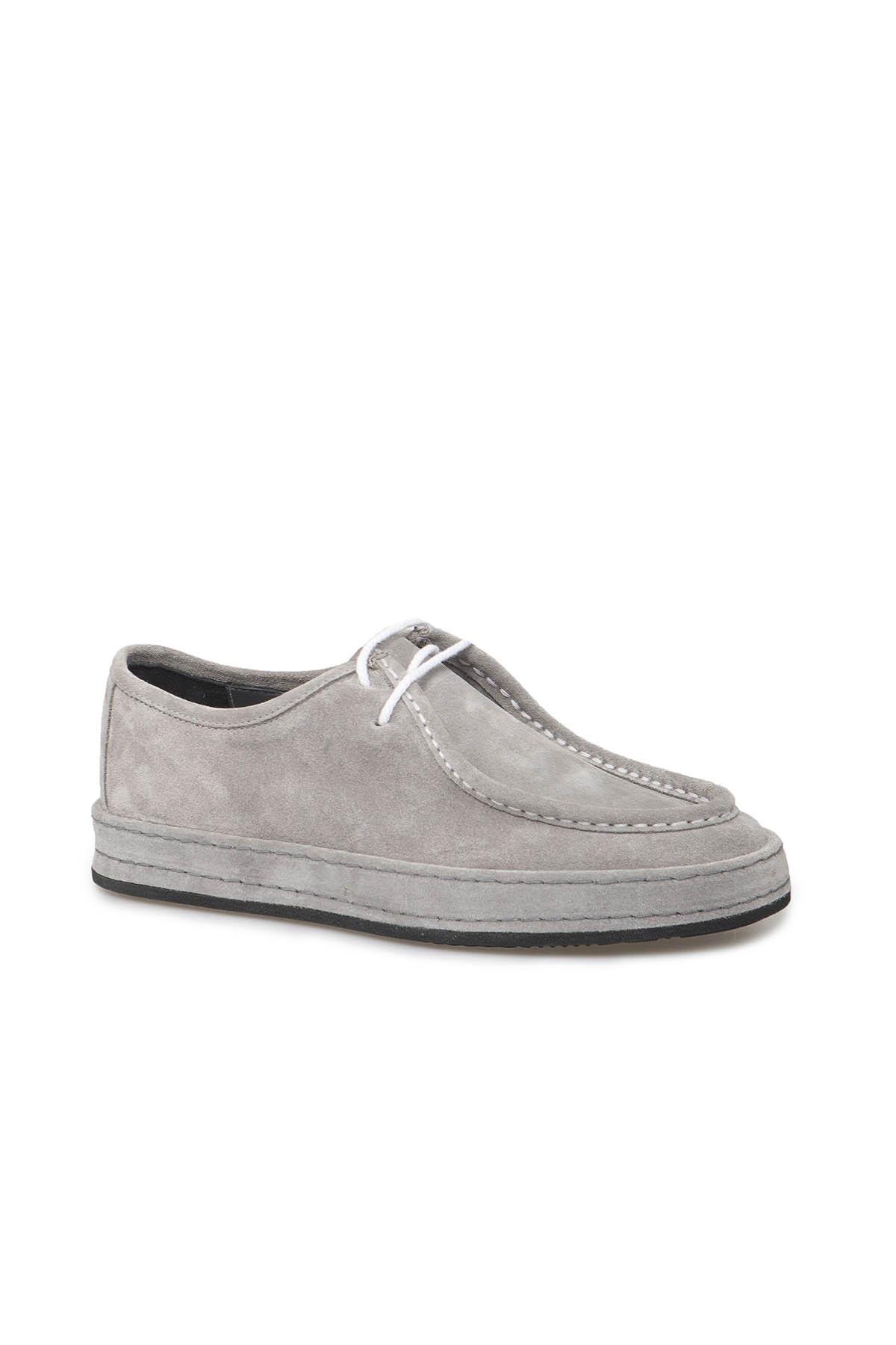 Gri %100 Deri Bağcıklı Casual Süet Ayakkabı