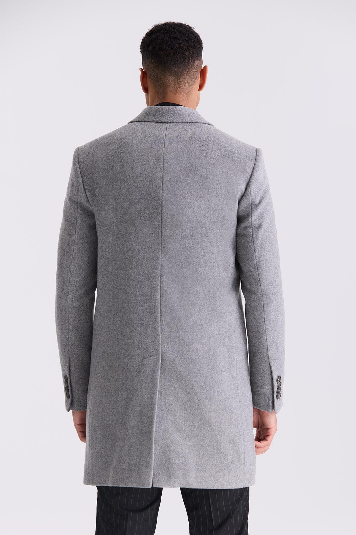 Gri Comfort Fit Mono Yaka Yan Cep Kaşe Kaban
