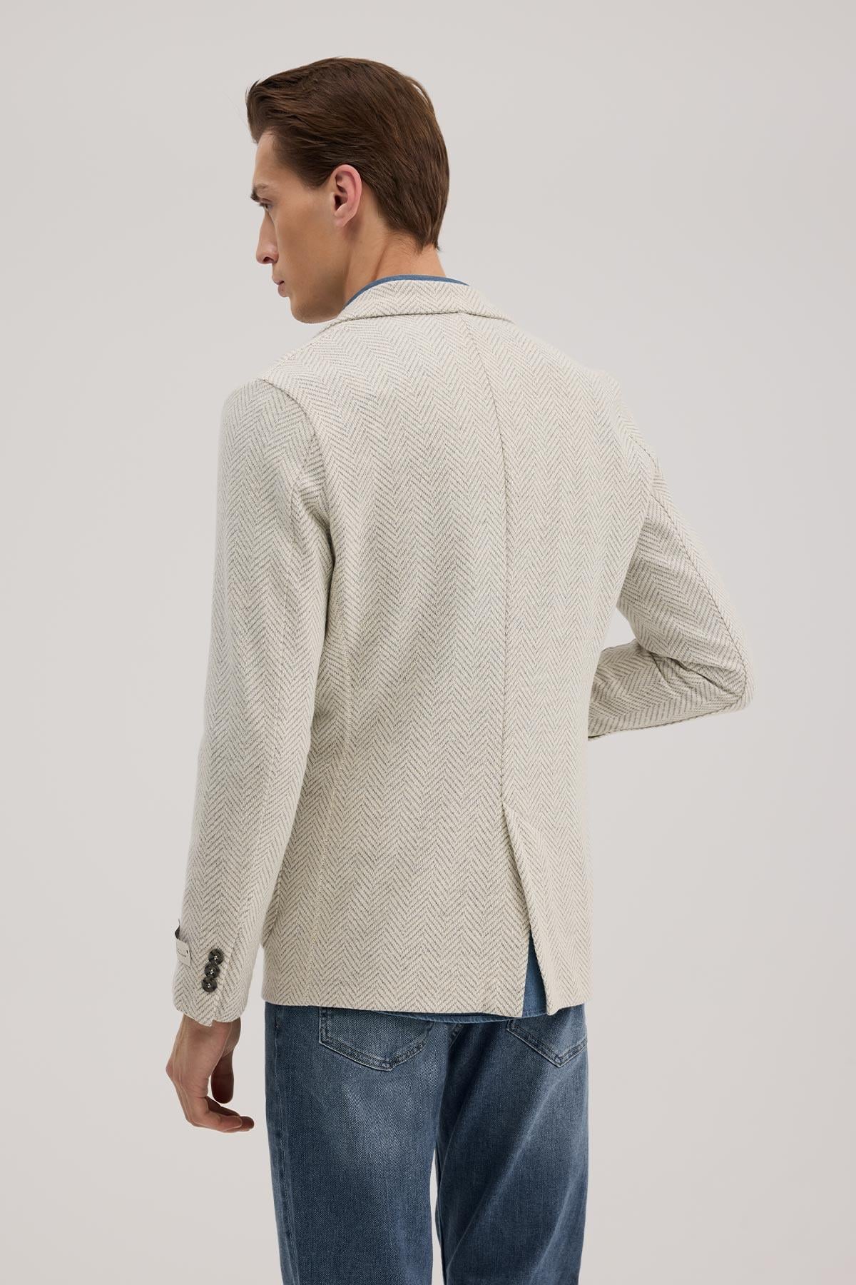Gri Dar Kalıp - Slim Fit Ceket Mono Yaka