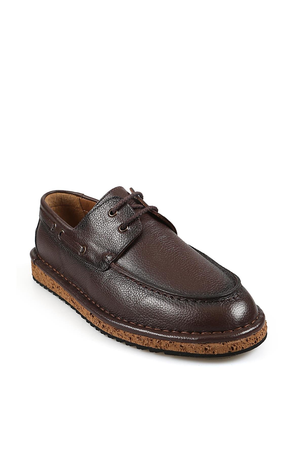 Kahve %100 Deri Bağcıklı Eva Taban Casual Ayakkabı