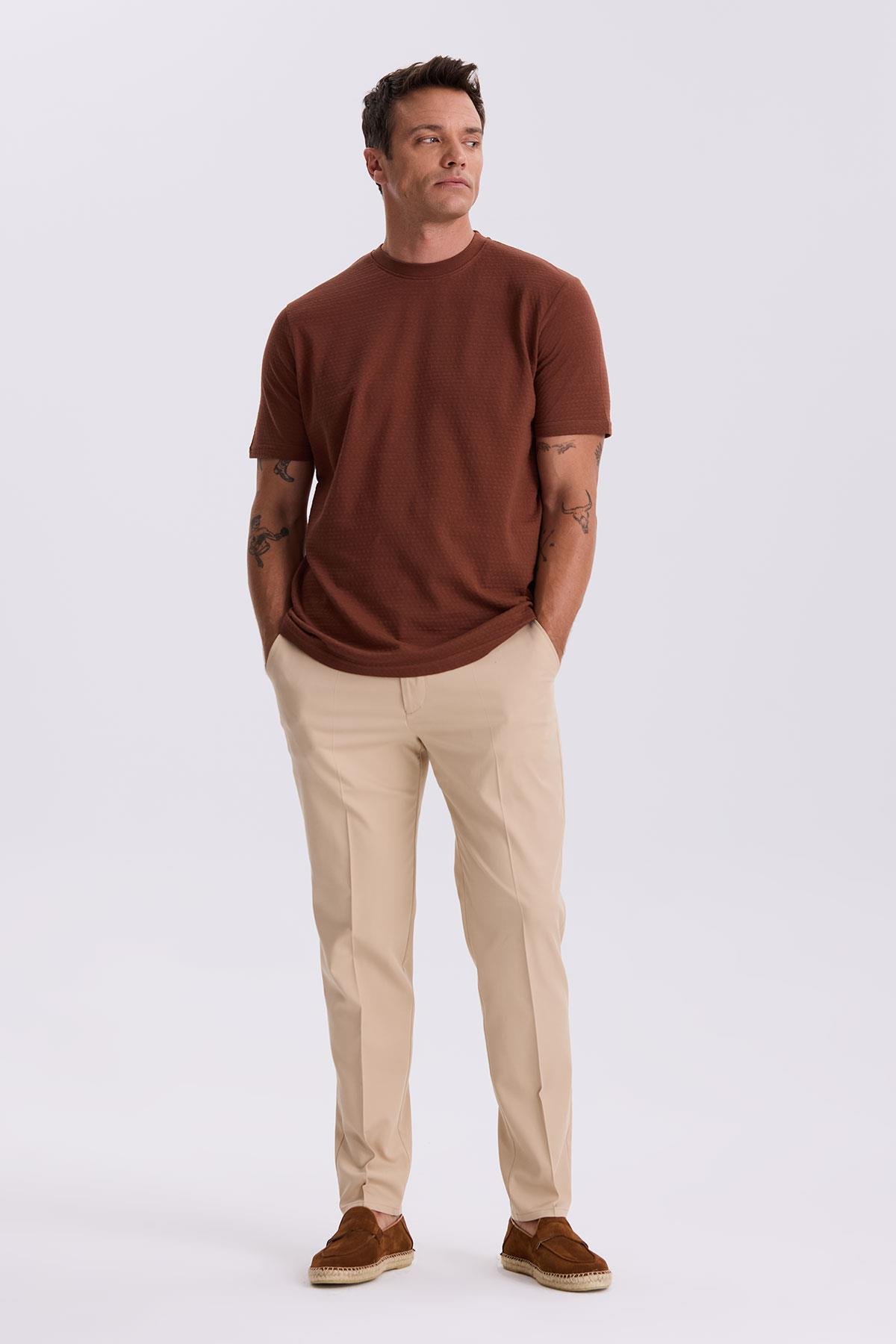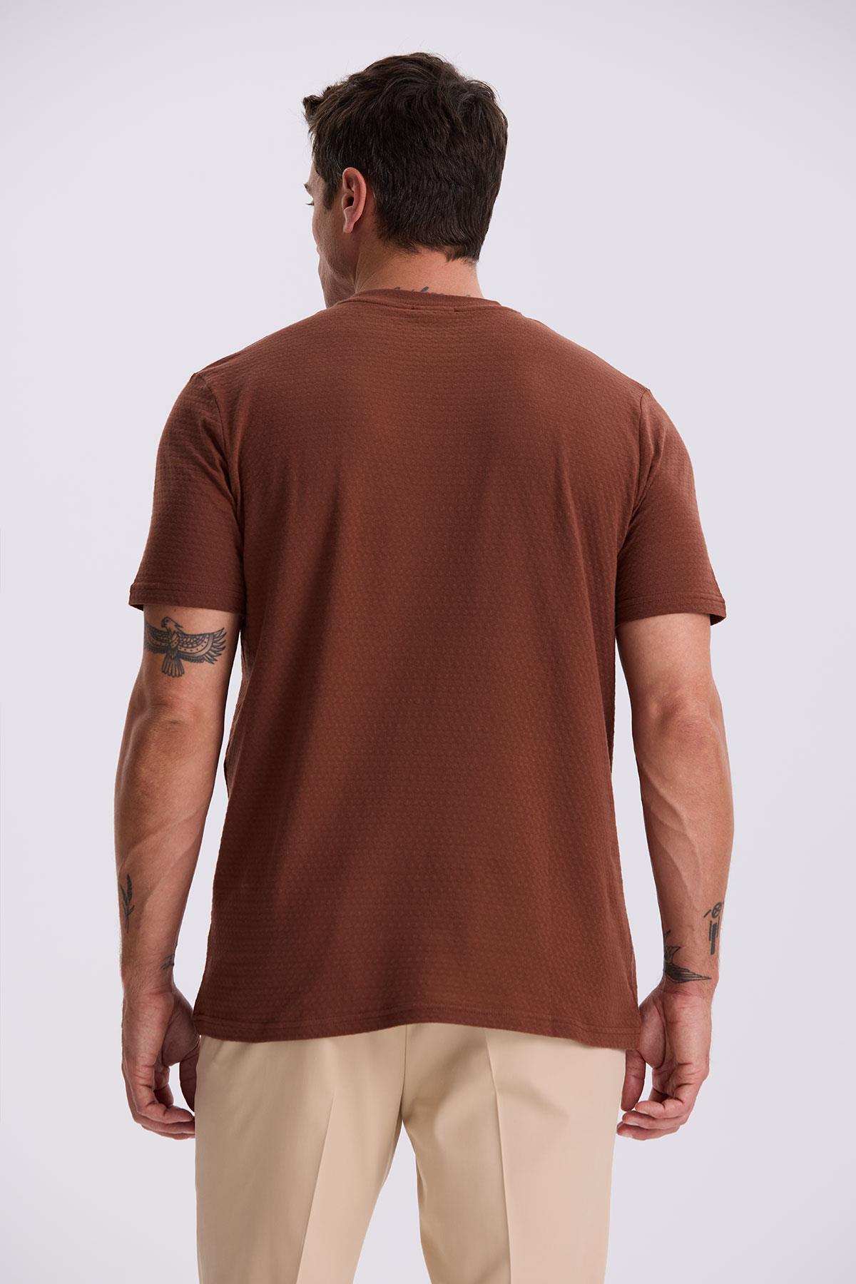 Kahve %100 Pamuk Desenli Bisiklet Yaka T-Shirt