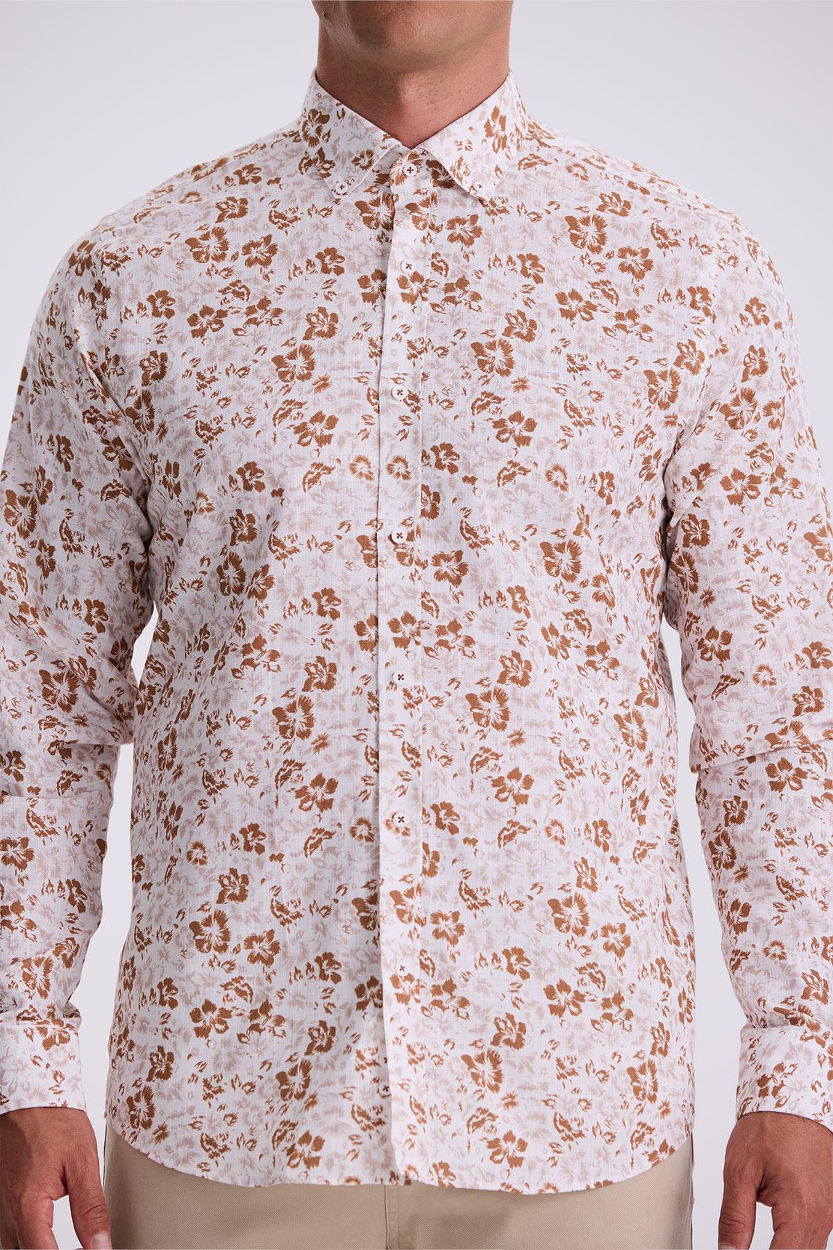 Kahve Çiçek Desenli Yaka Düğmeli Comfort Fit Gömlek