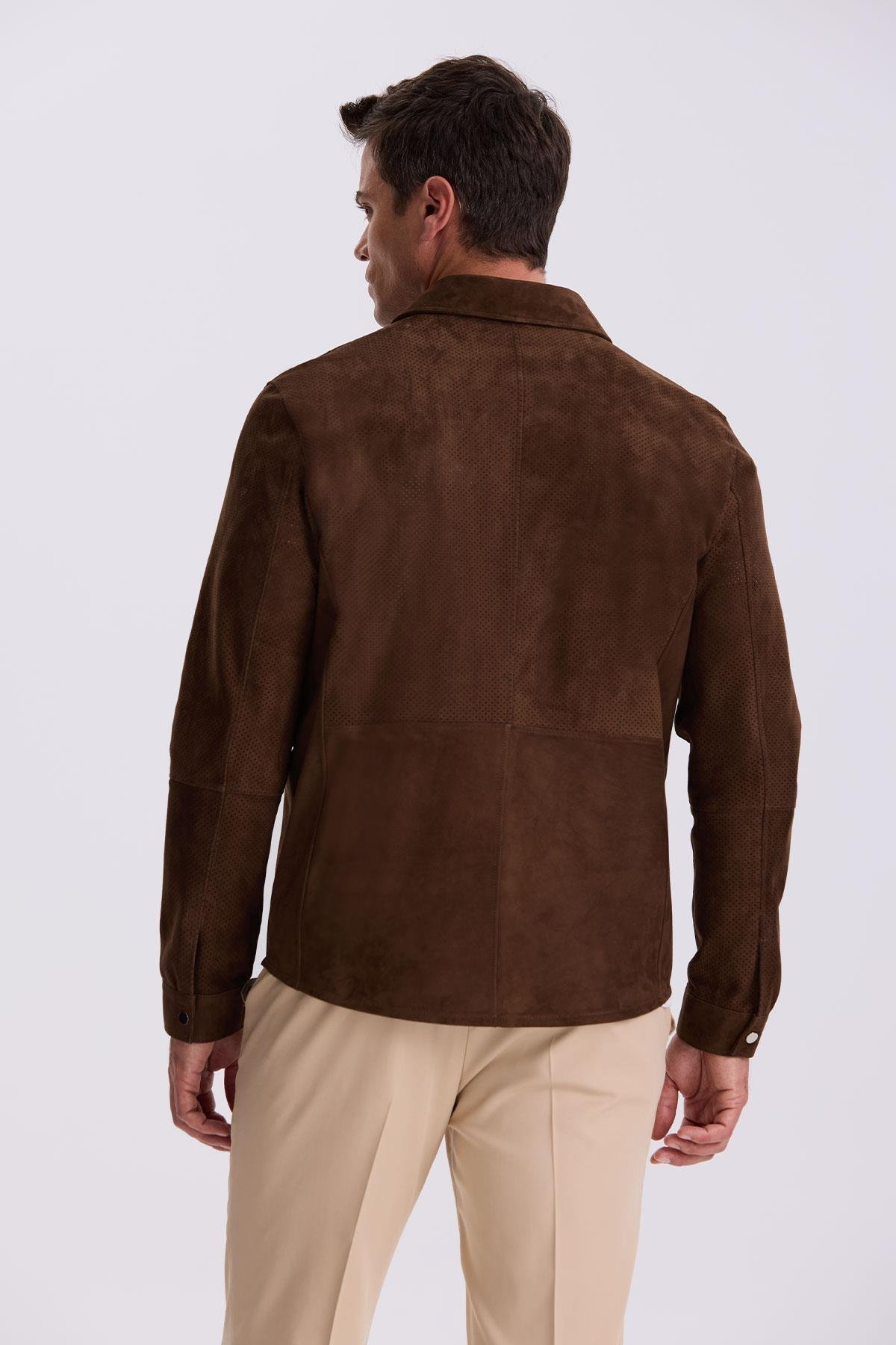 Kahve Comfort Fit Bebe Yaka %100 Deri Mont