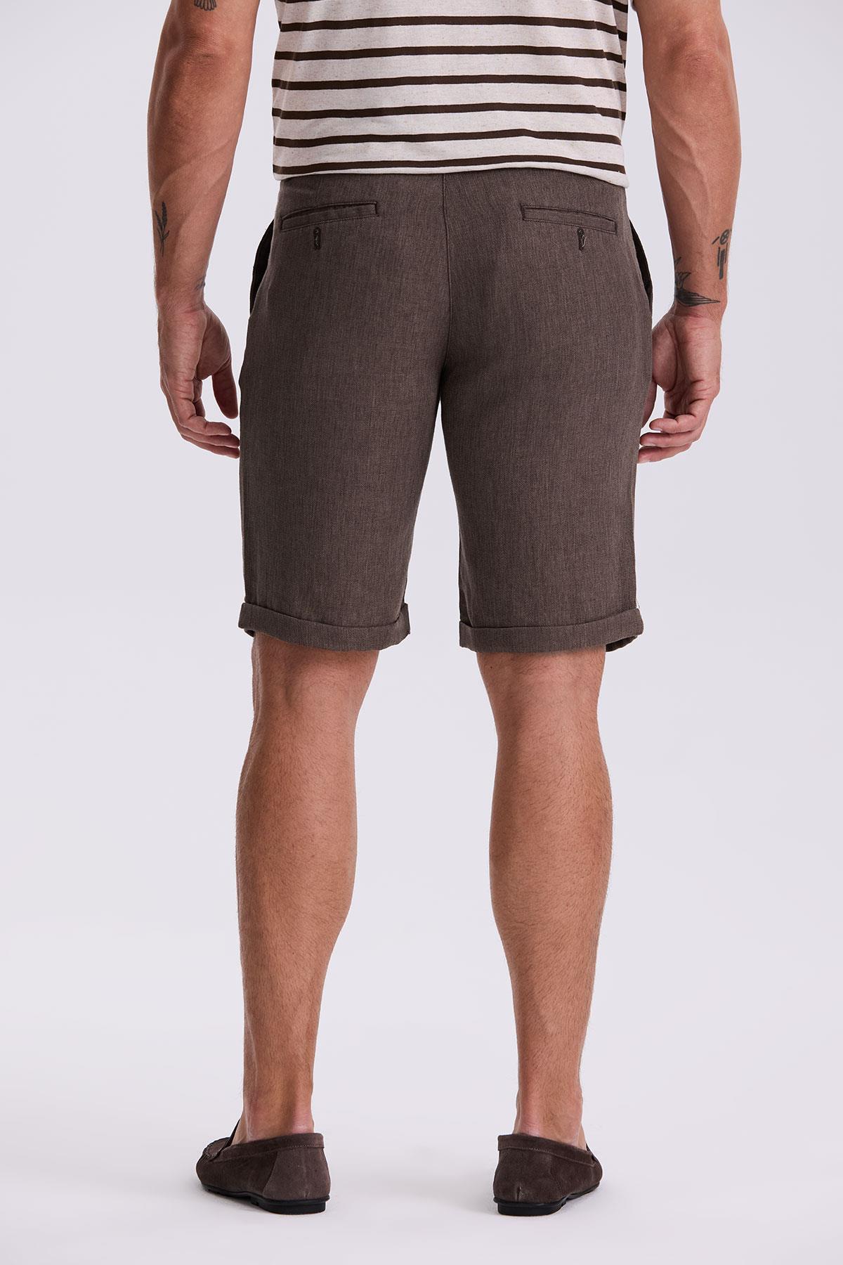 Kahve Comfort Fit Keten Dokulu Rahat Kesim Duble Paça Şort
