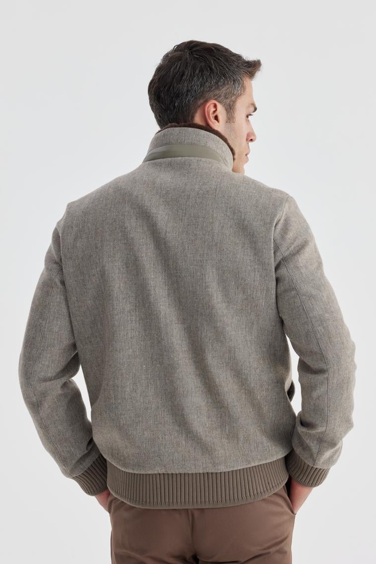 Kahve Comfort Fit Kürklü yaka Yünlü Mont