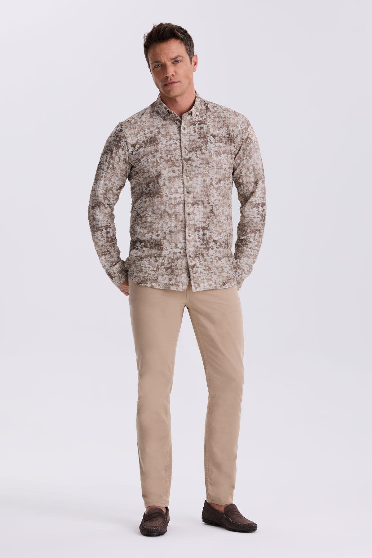 Kahve Desenli Düğmeli Yaka Comfort Fit Gömlek (JK39CF01M044_016)