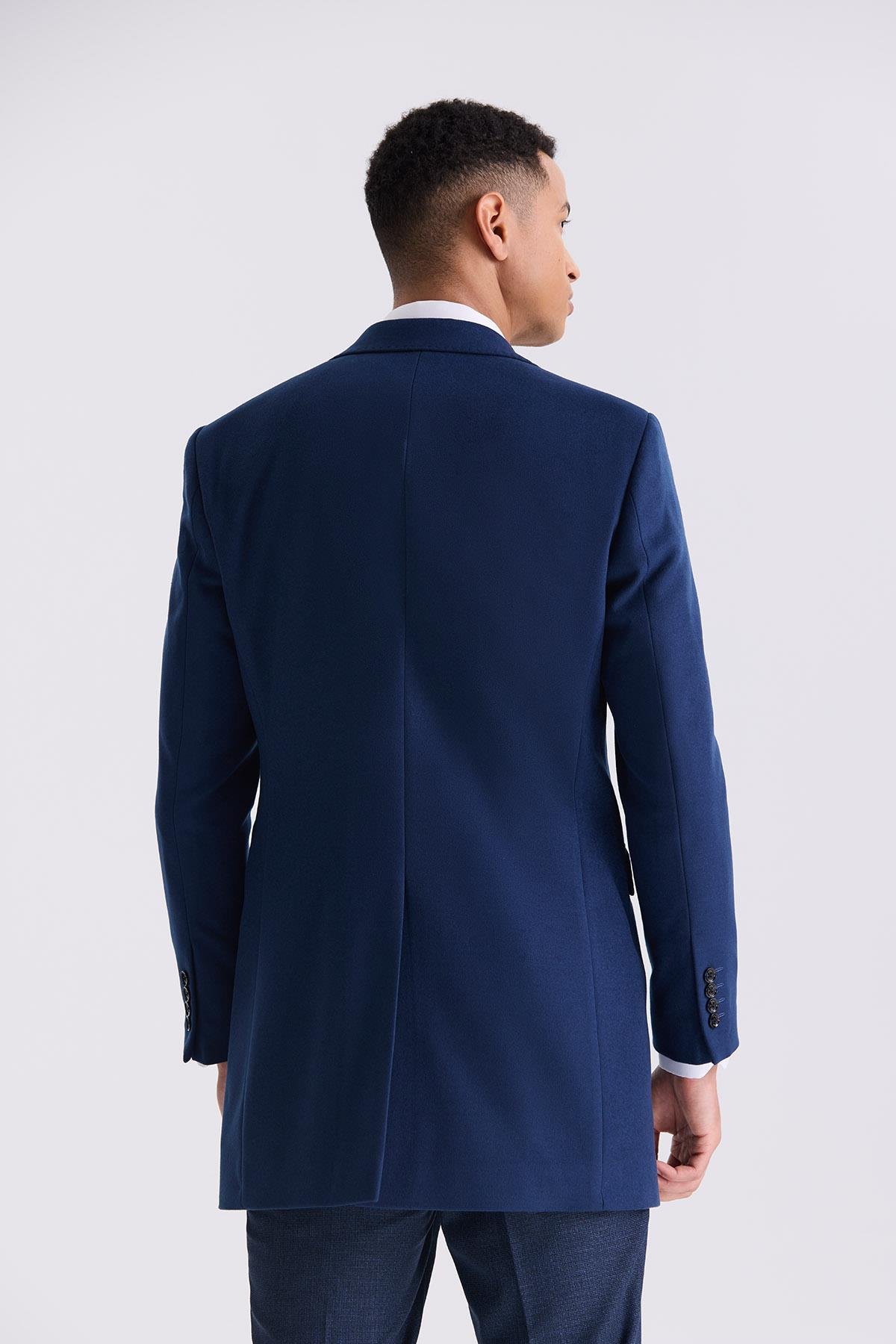 Koyu Lacivert Slim Fit Sivri Yaka Kaban