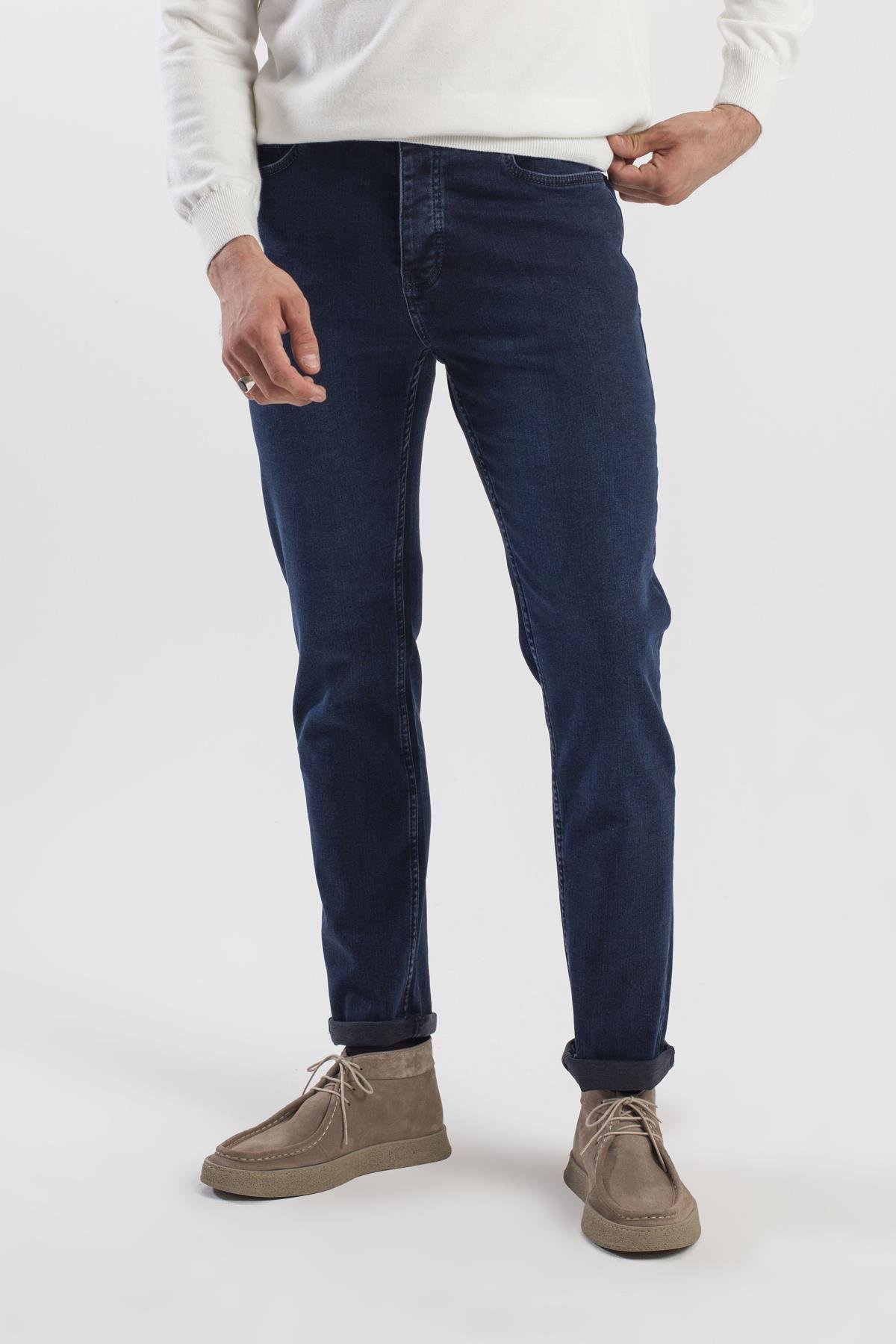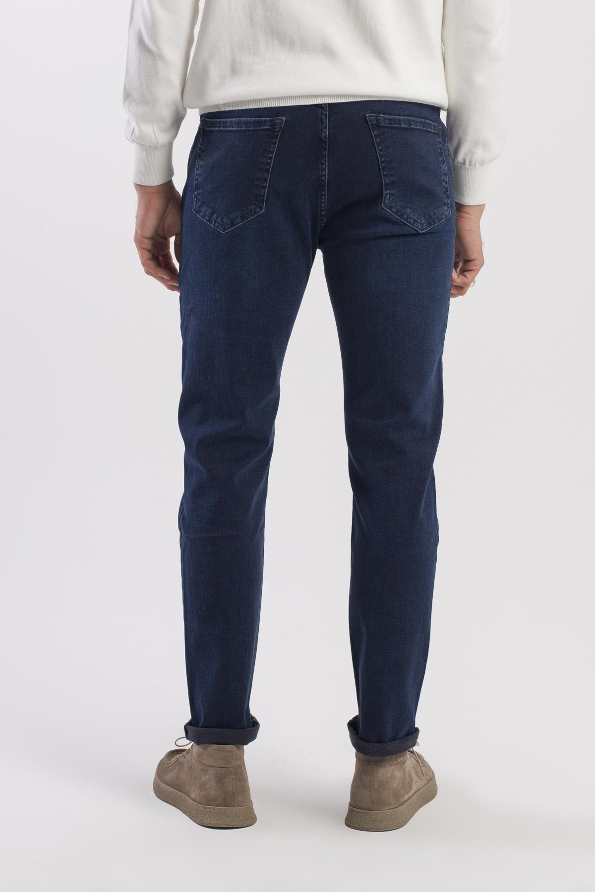 Koyu Lacivert Slim Fit Yıkamalı Pamuklu Jean Kot Pantolon