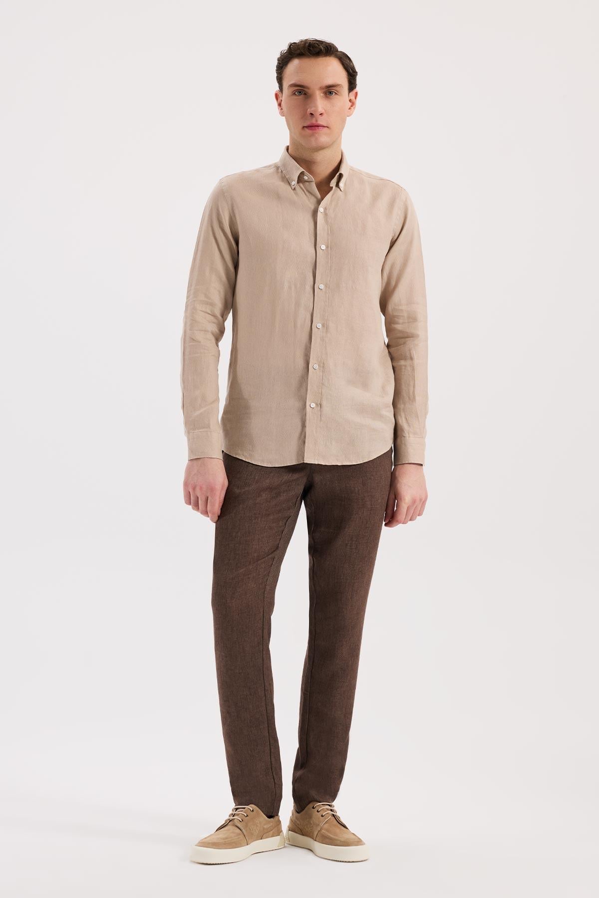 Krem Rahat Kalıp - Comfort Fit Gömlek Klasik Yaka