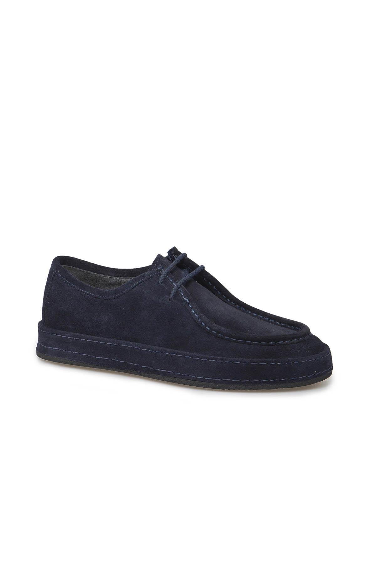 Lacivert %100 Deri Bağcıklı Casual Süet Ayakkabı