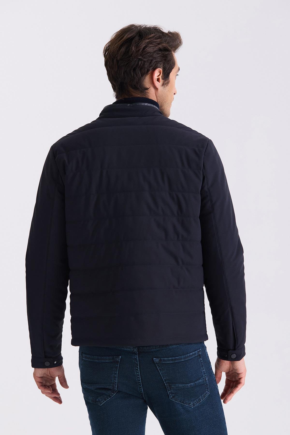 Lacivert Comfort Fit Dik Yaka Önü Fermuarlı Mevsimlik Mont