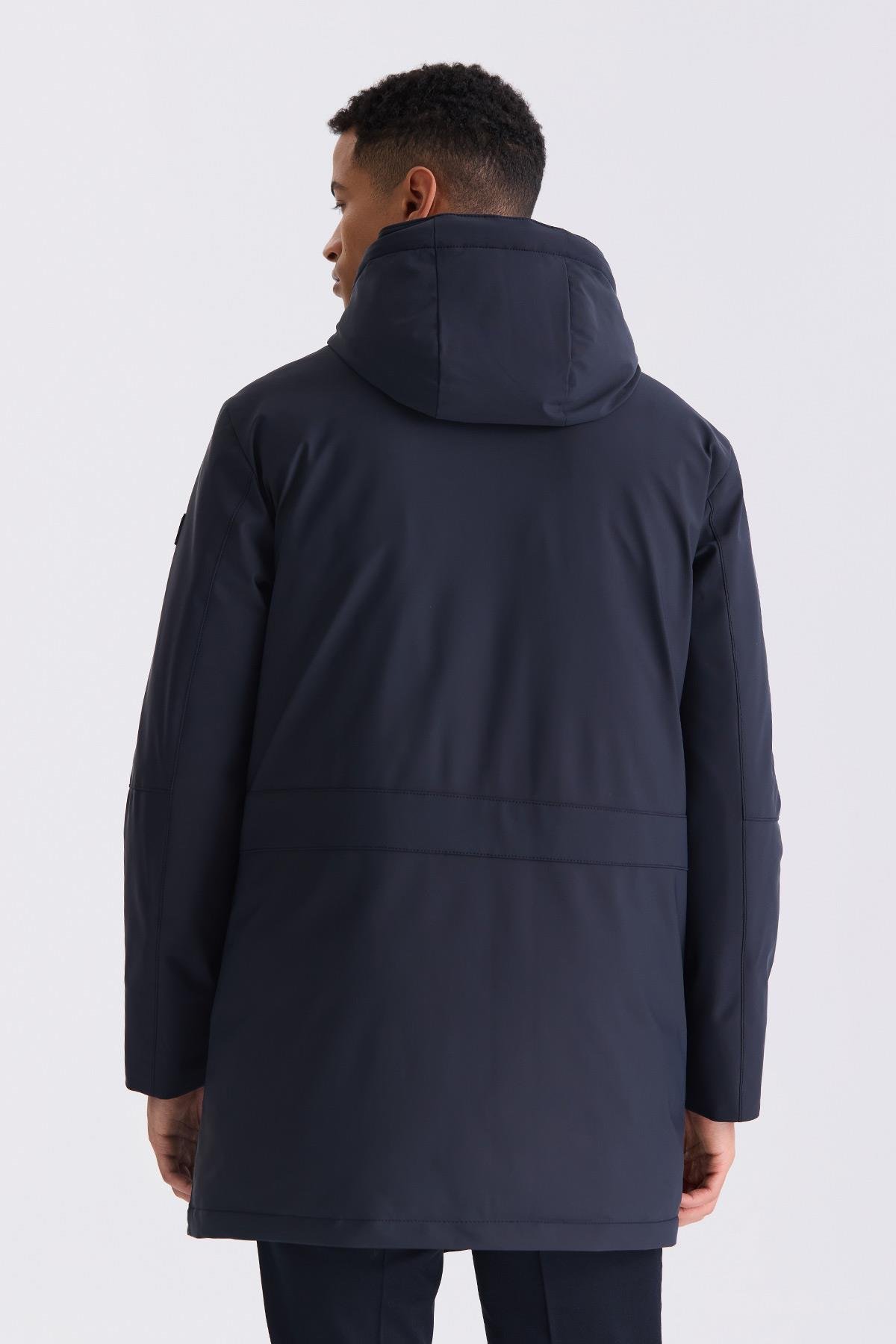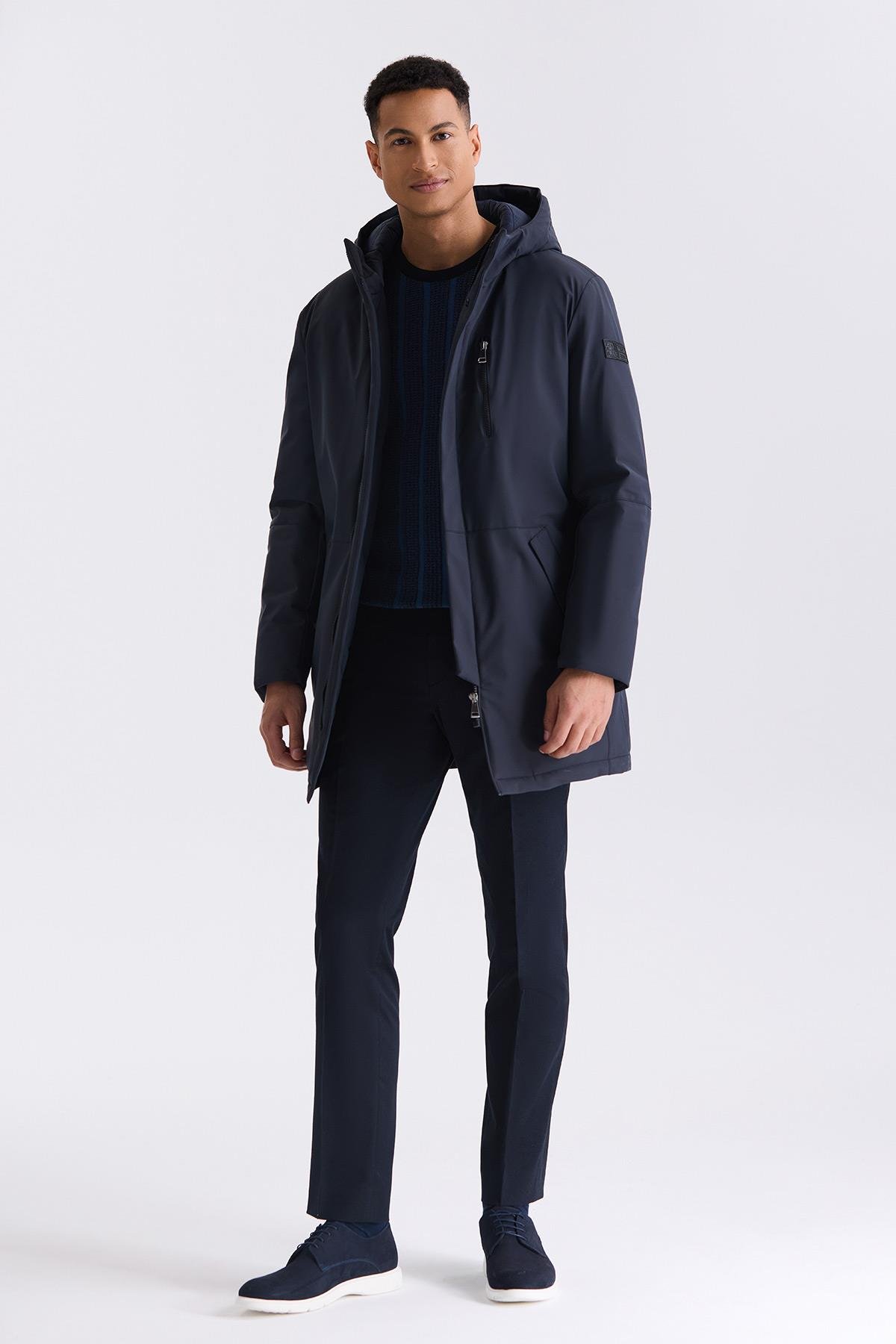 Lacivert Comfort Fit Kapüşonlu Gizli Fermuarlı Kışlık Mont