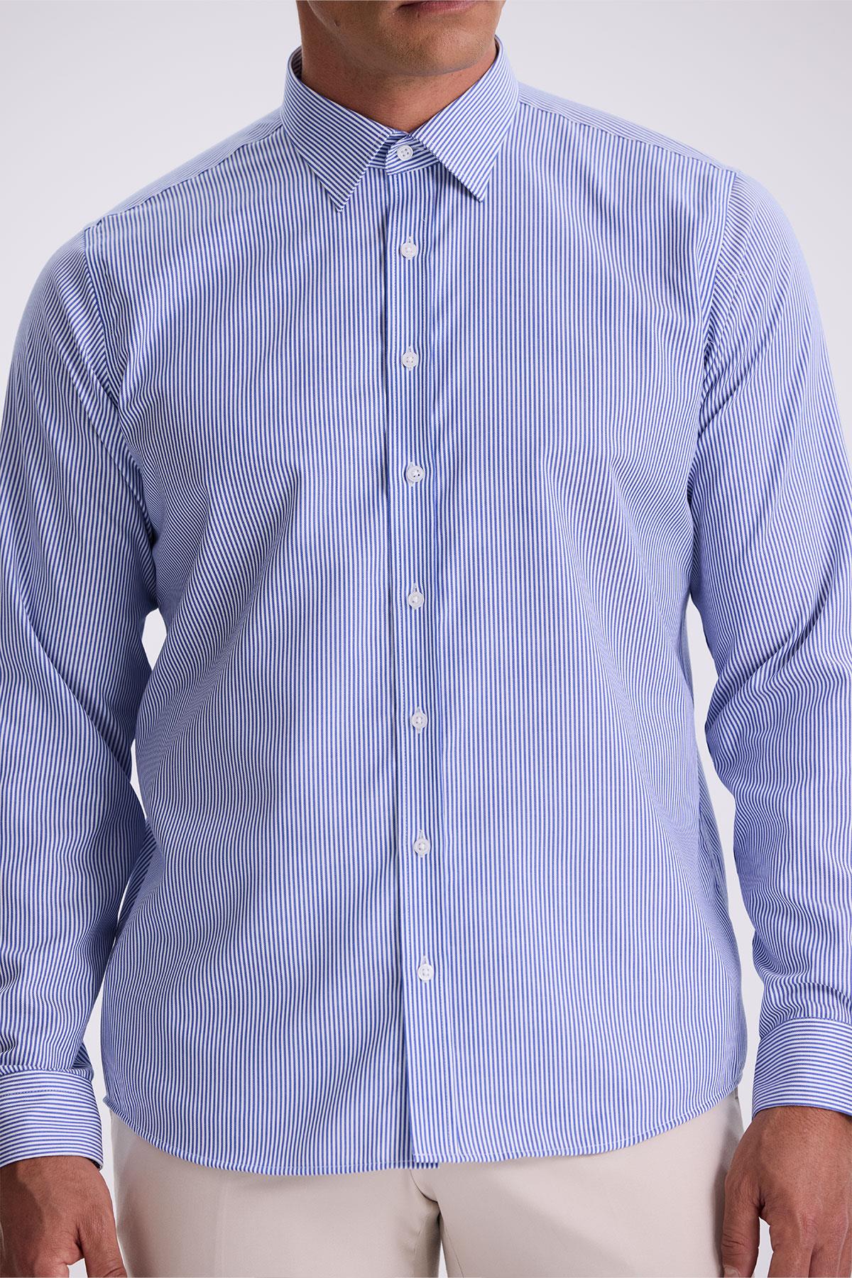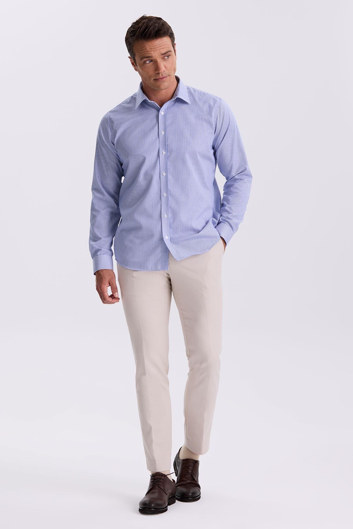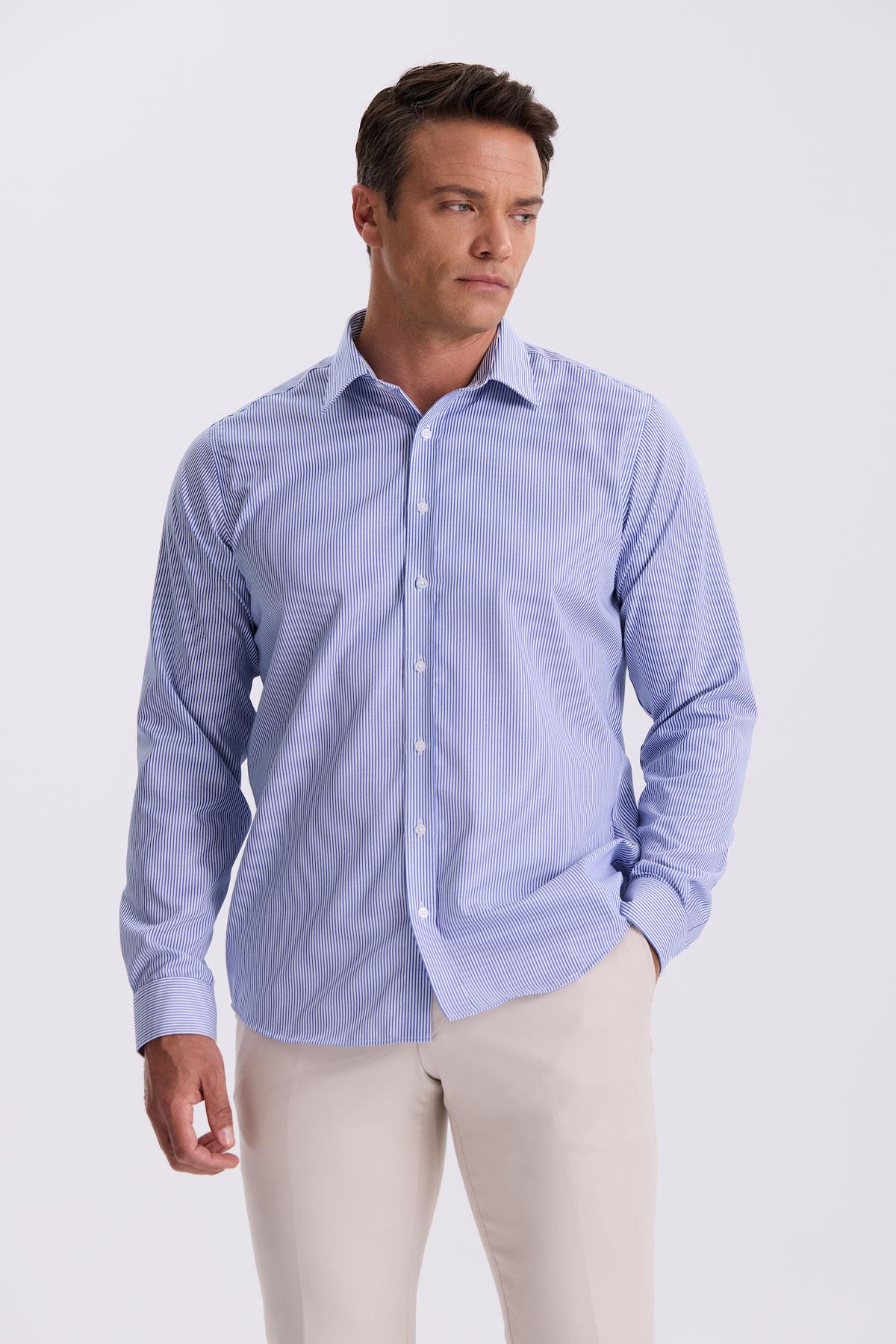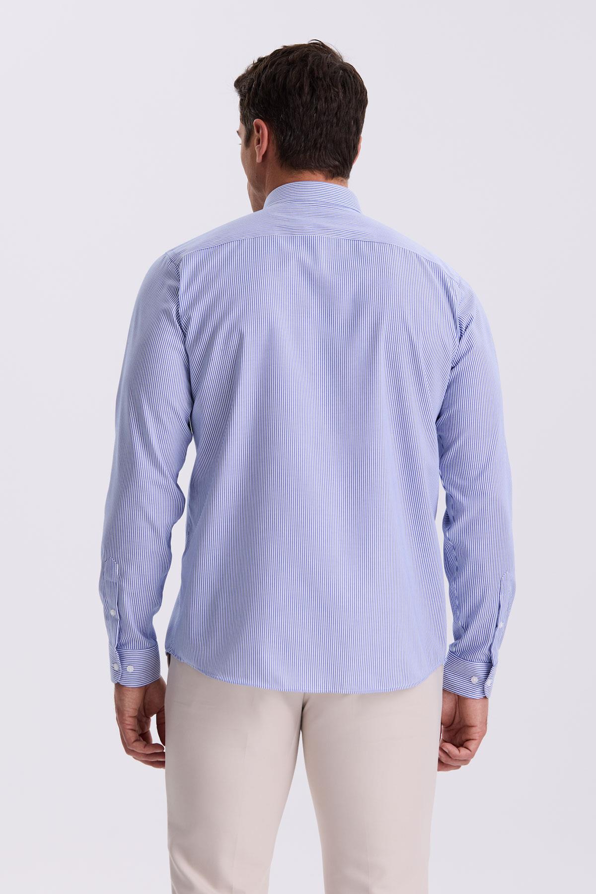 Lacivert Comfort Fit Ütü Gerektirmeyen %100 Pamuk Çizgili Non İron Gömlek