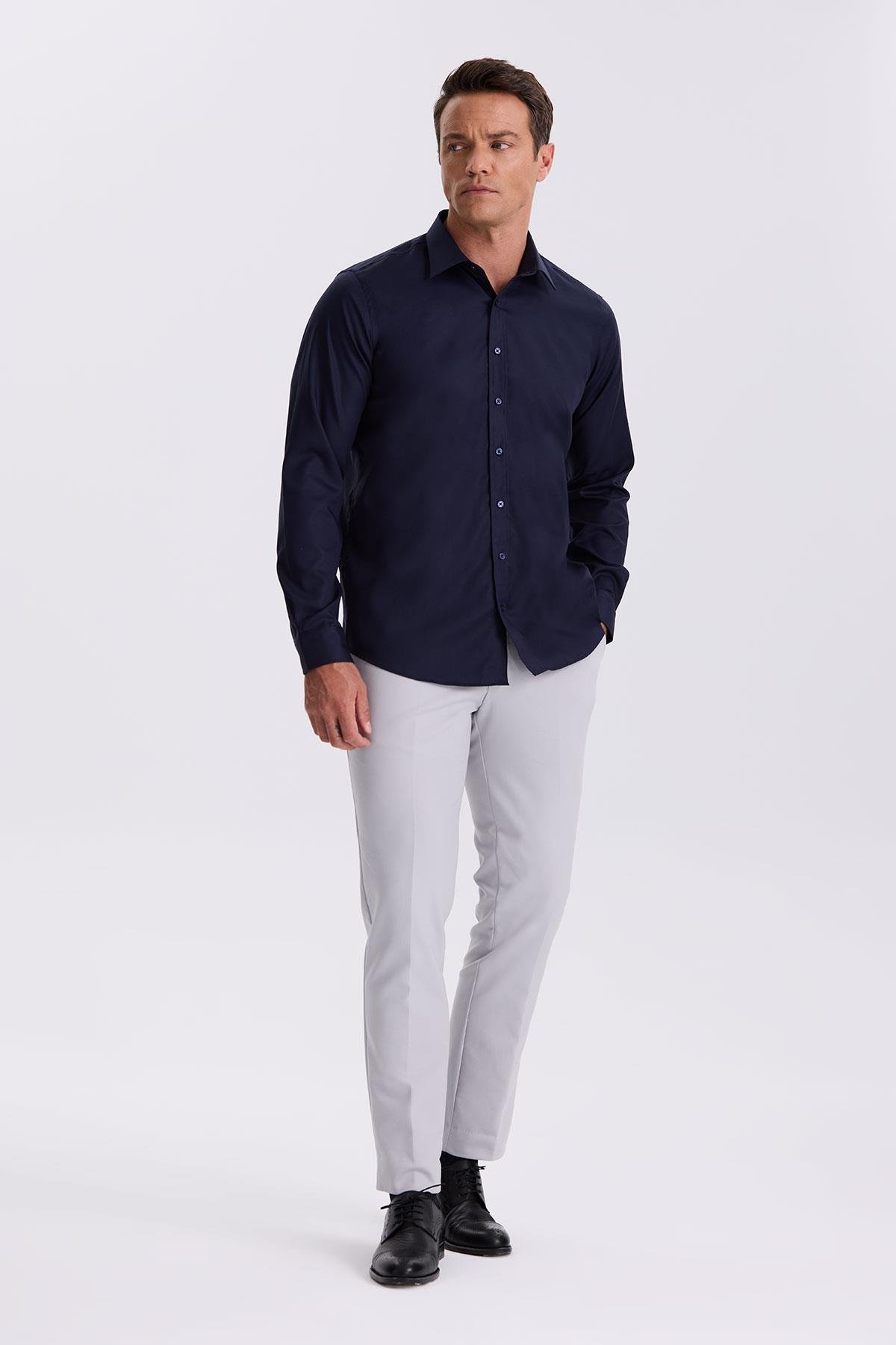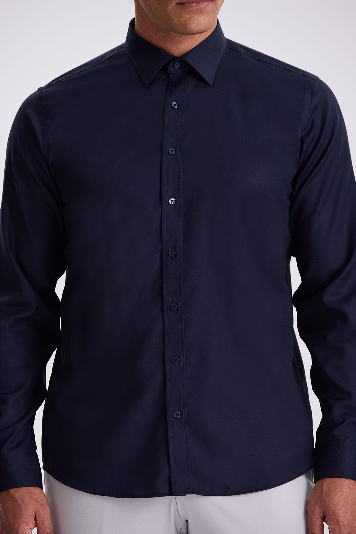 Lacivert Comfort Fit Ütü Gerektirmeyen %100 Pamuk Non İron Gömlek