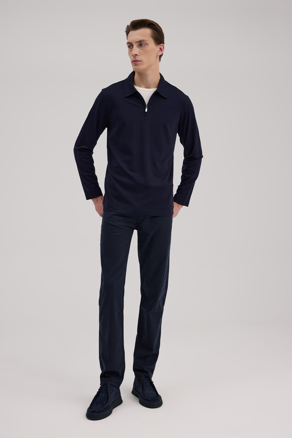Lacivert Dar Kalıp - Slim Fit Sweatshirt Fermuarlı