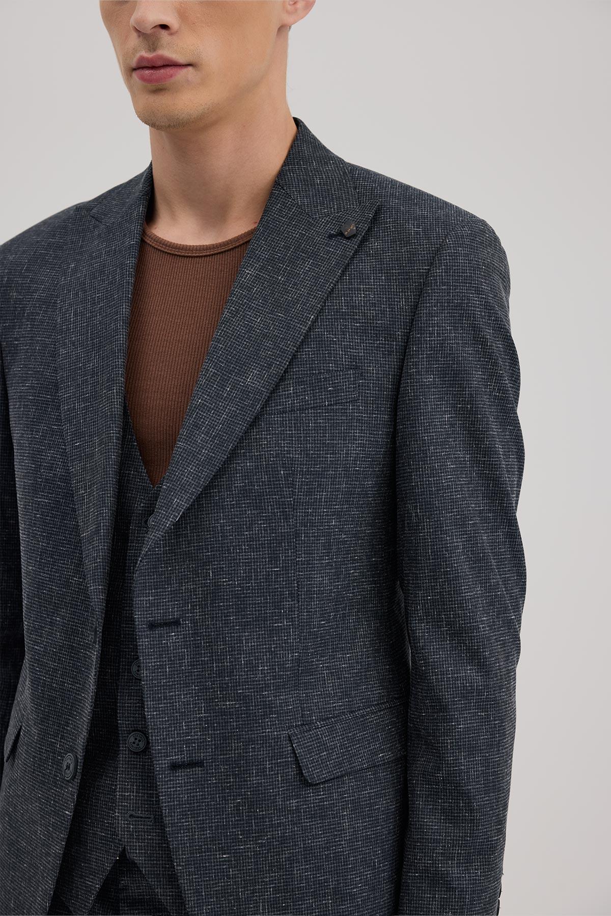 Lacivert Dar Kalıp - Slim Fit Takım Elbise Sivri Yaka