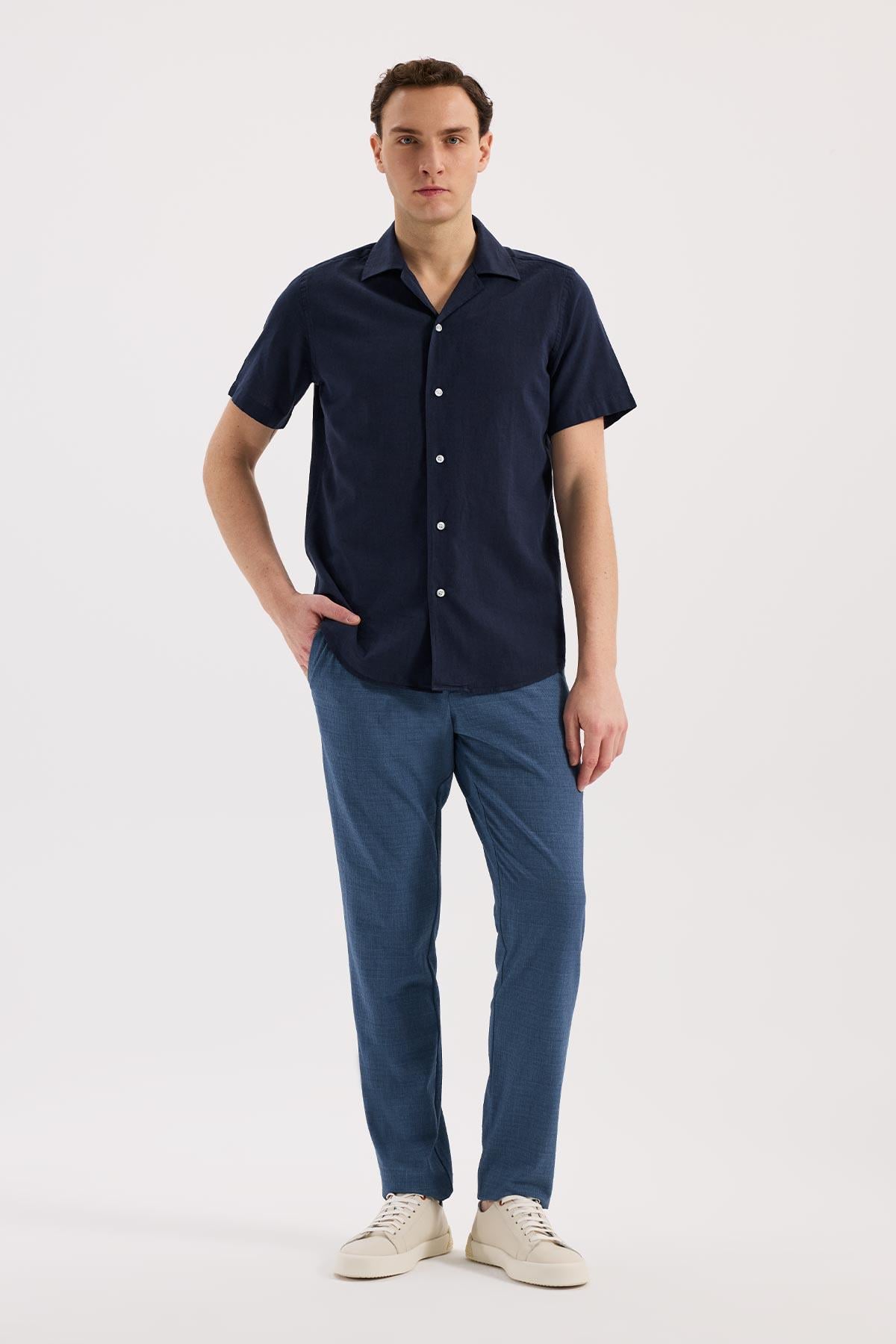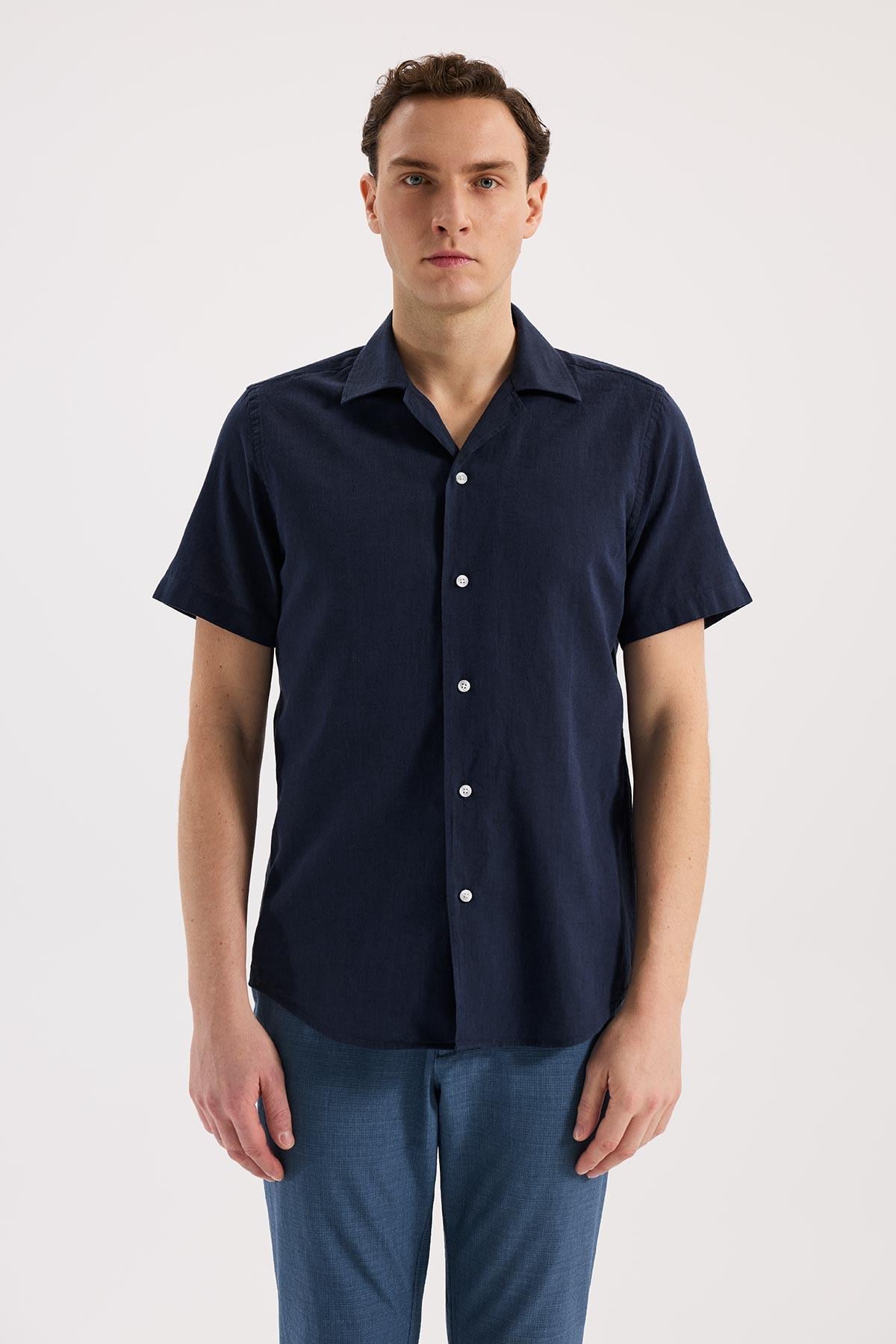 Lacivert Rahat Kalıp - Comfort Fit Gömlek Klasik Yaka