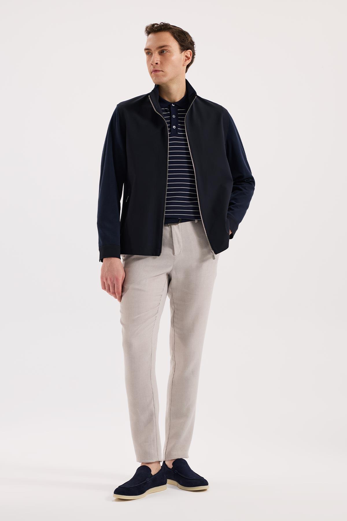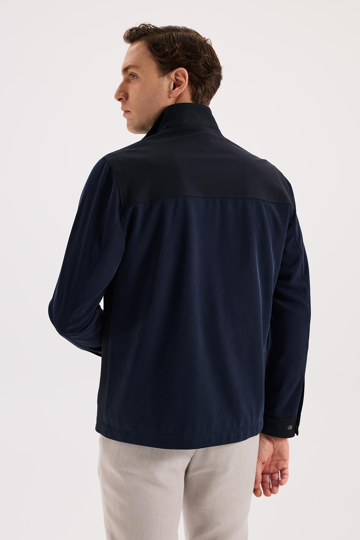 Lacivert Rahat Kalıp - Comfort Fit Mont Hakim Yaka