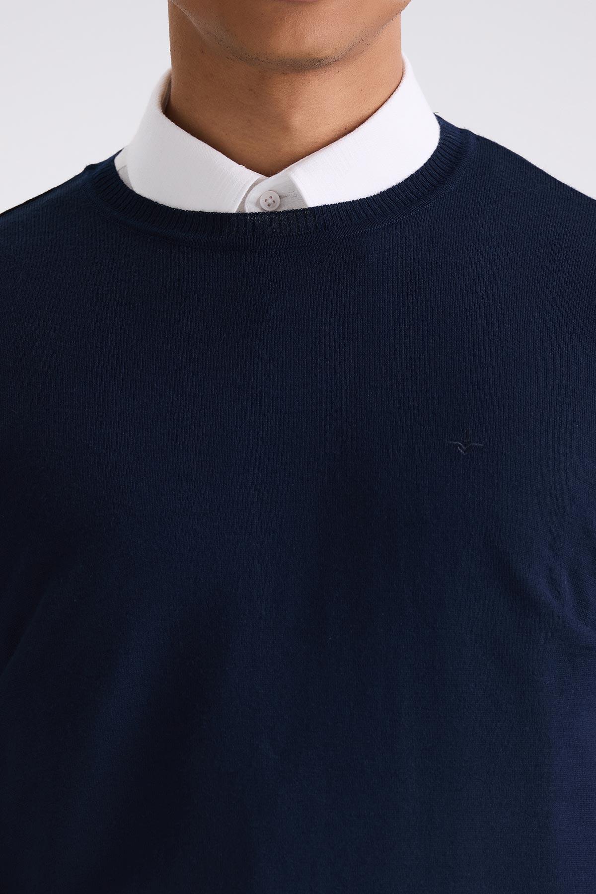 Lacivert Regular Fit Bisiklet Yaka Triko Kazak